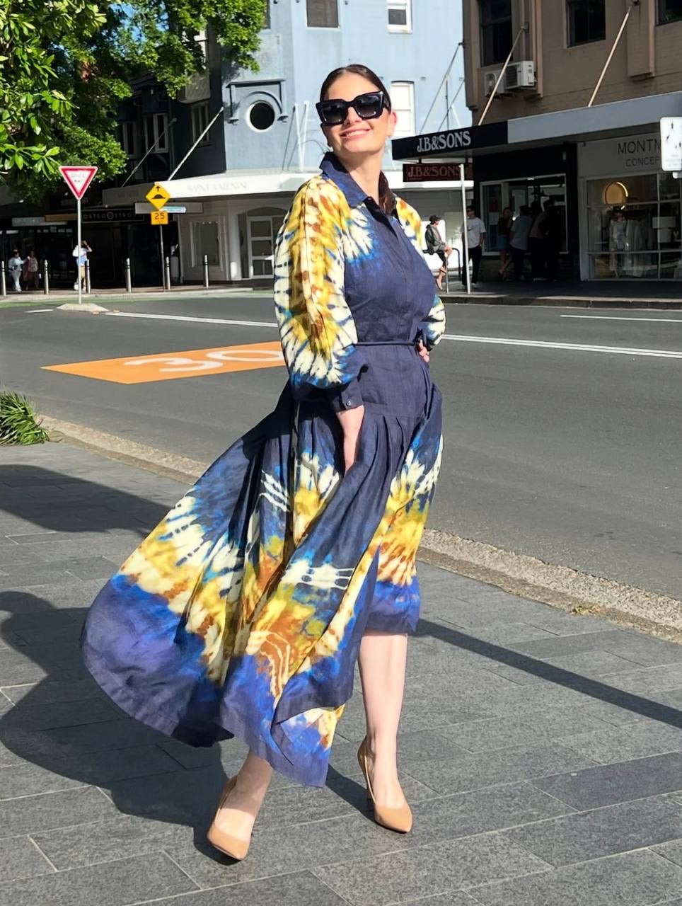 ALM Martine Tie Dye Ramie Shirtdress Midi Dress