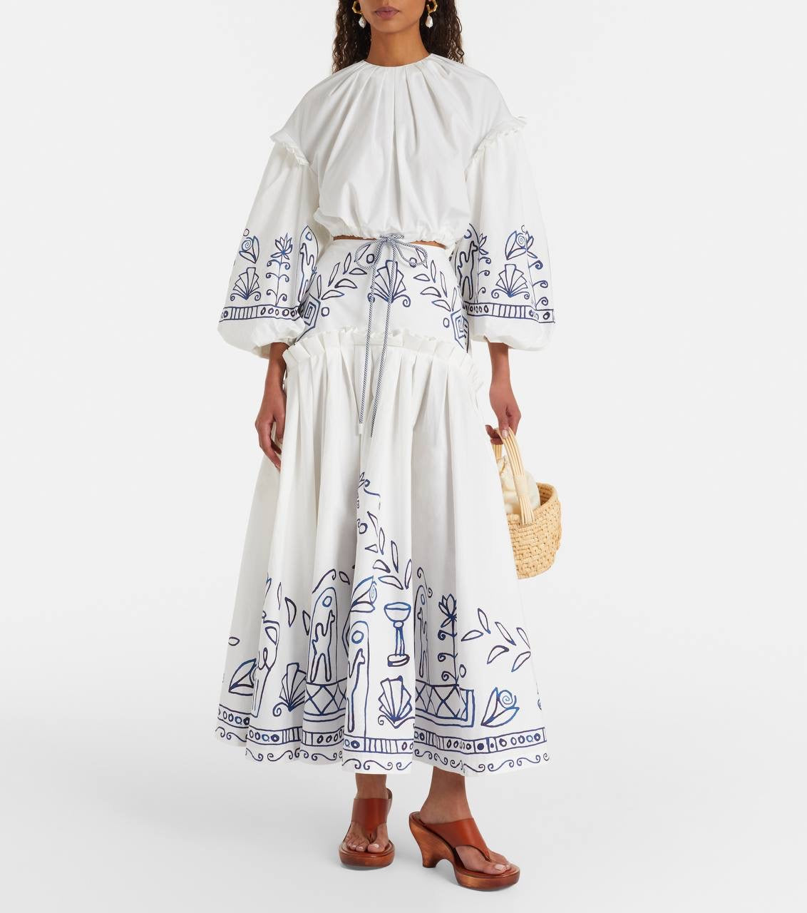 ALM Leela Printed Cotton Shirt | Midi Skirt | Set