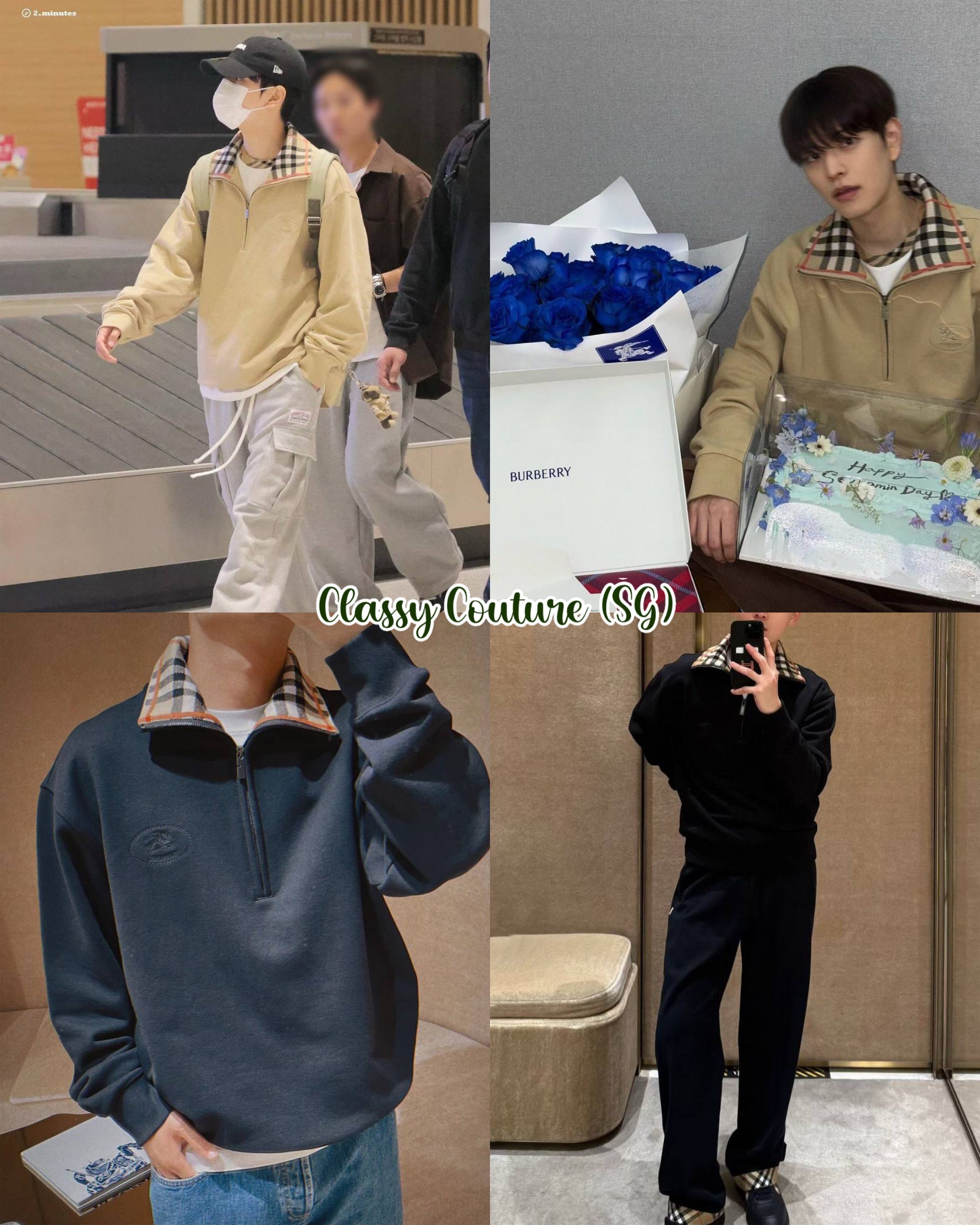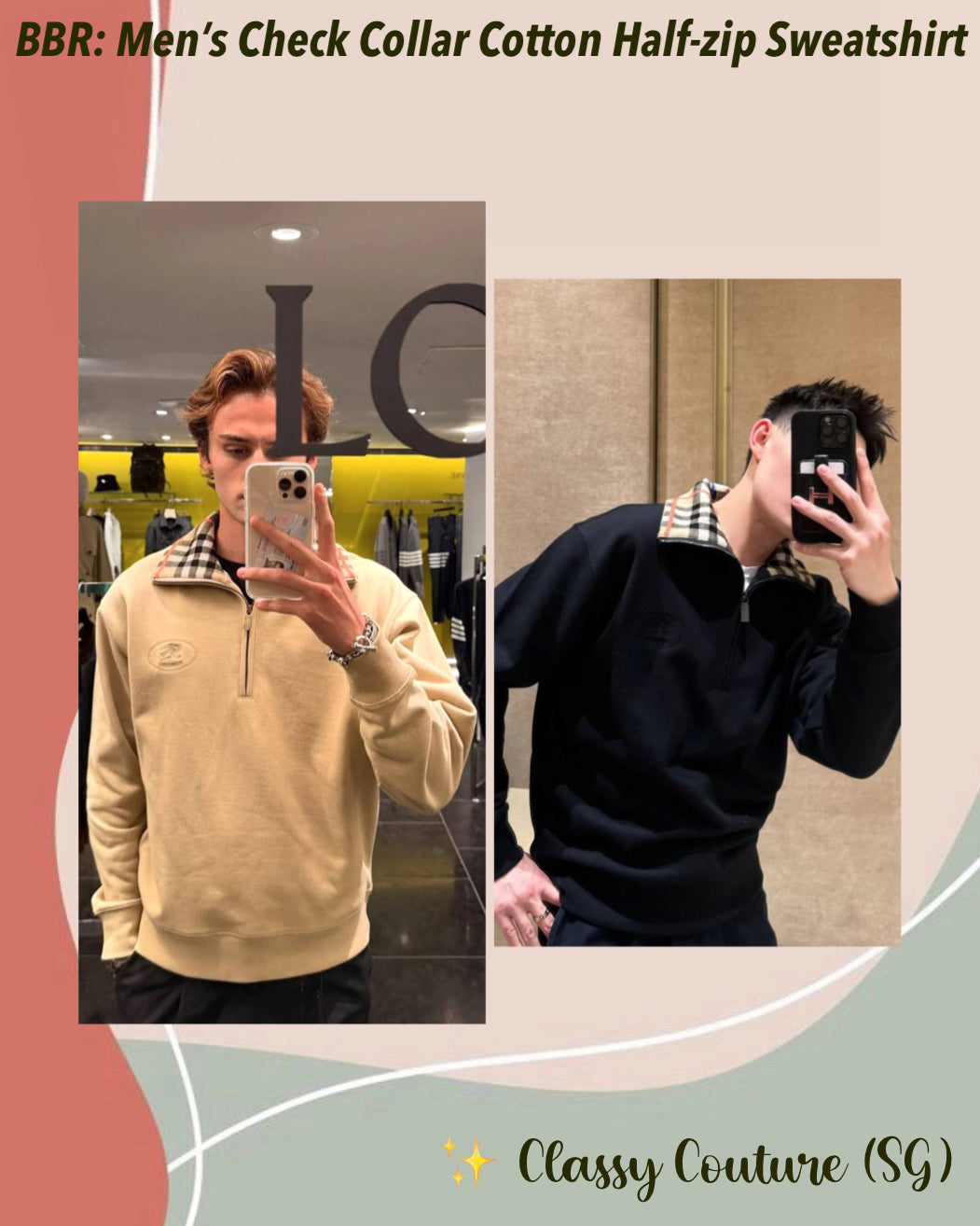 BBR Men’s Check Collar Cotton Half-zip Sweatshirt Sweater Pullover