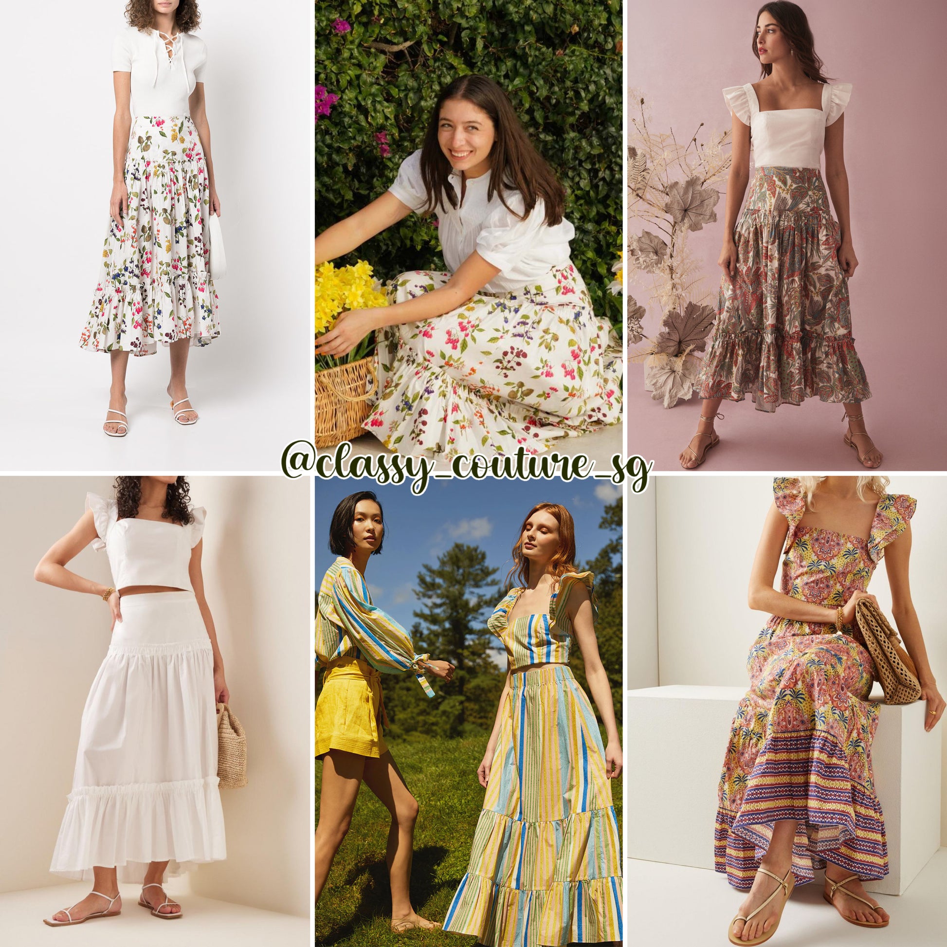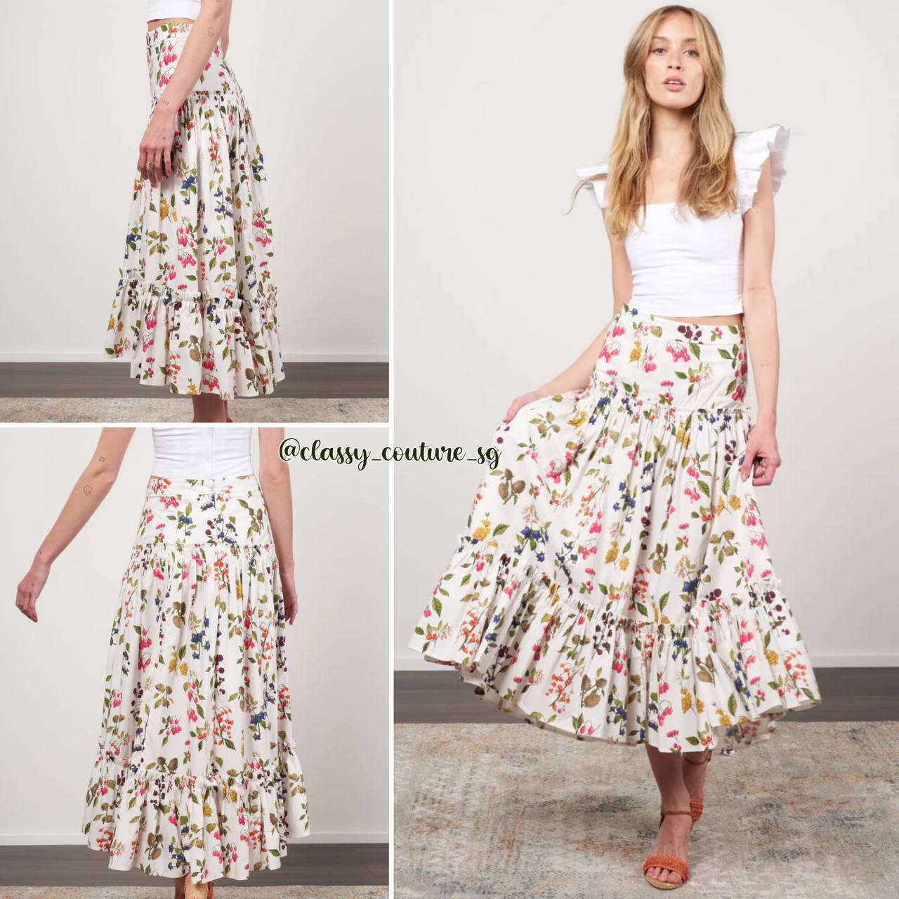 CC Tisbury Midi Maxi Skirt in White | Botanical Ivory