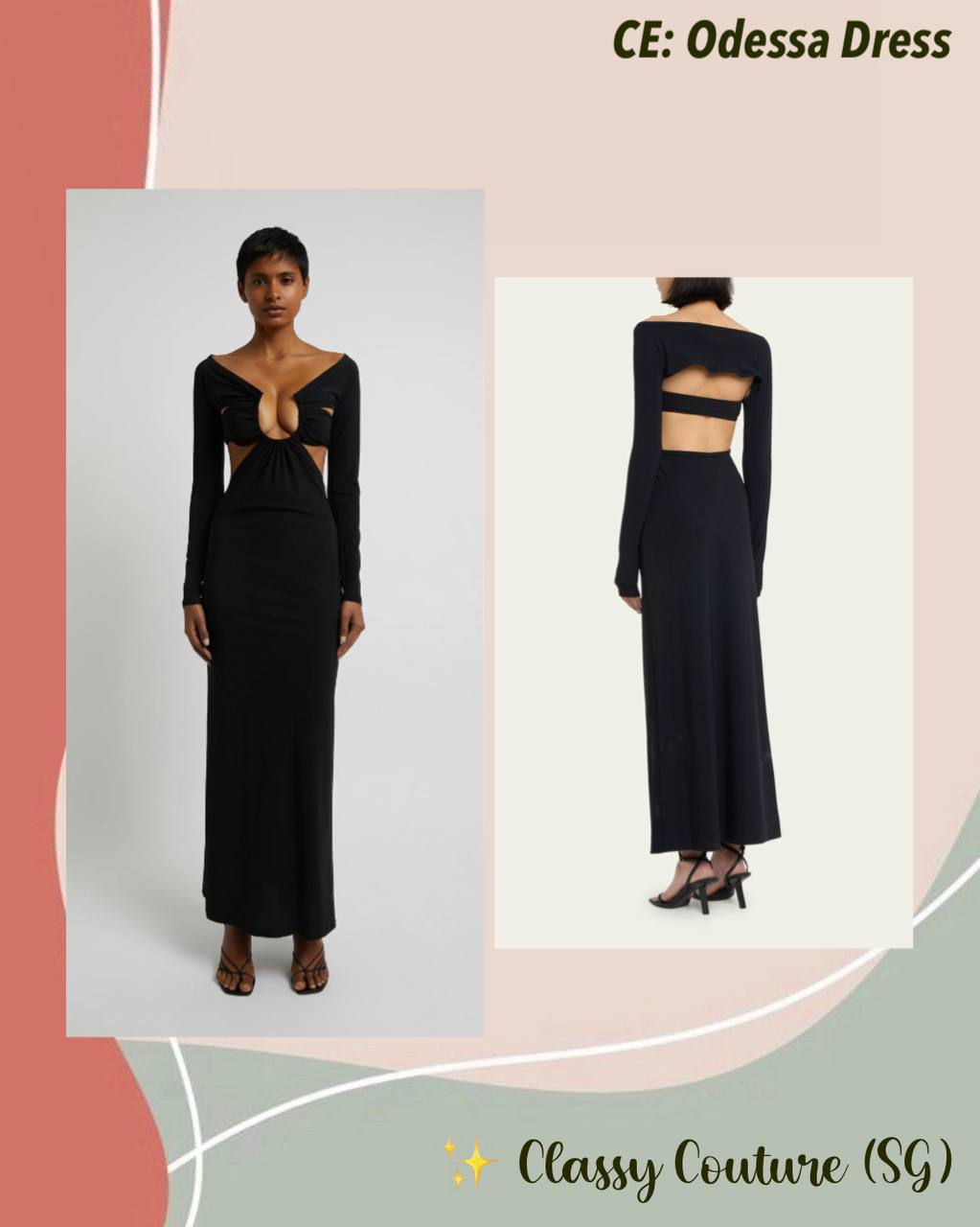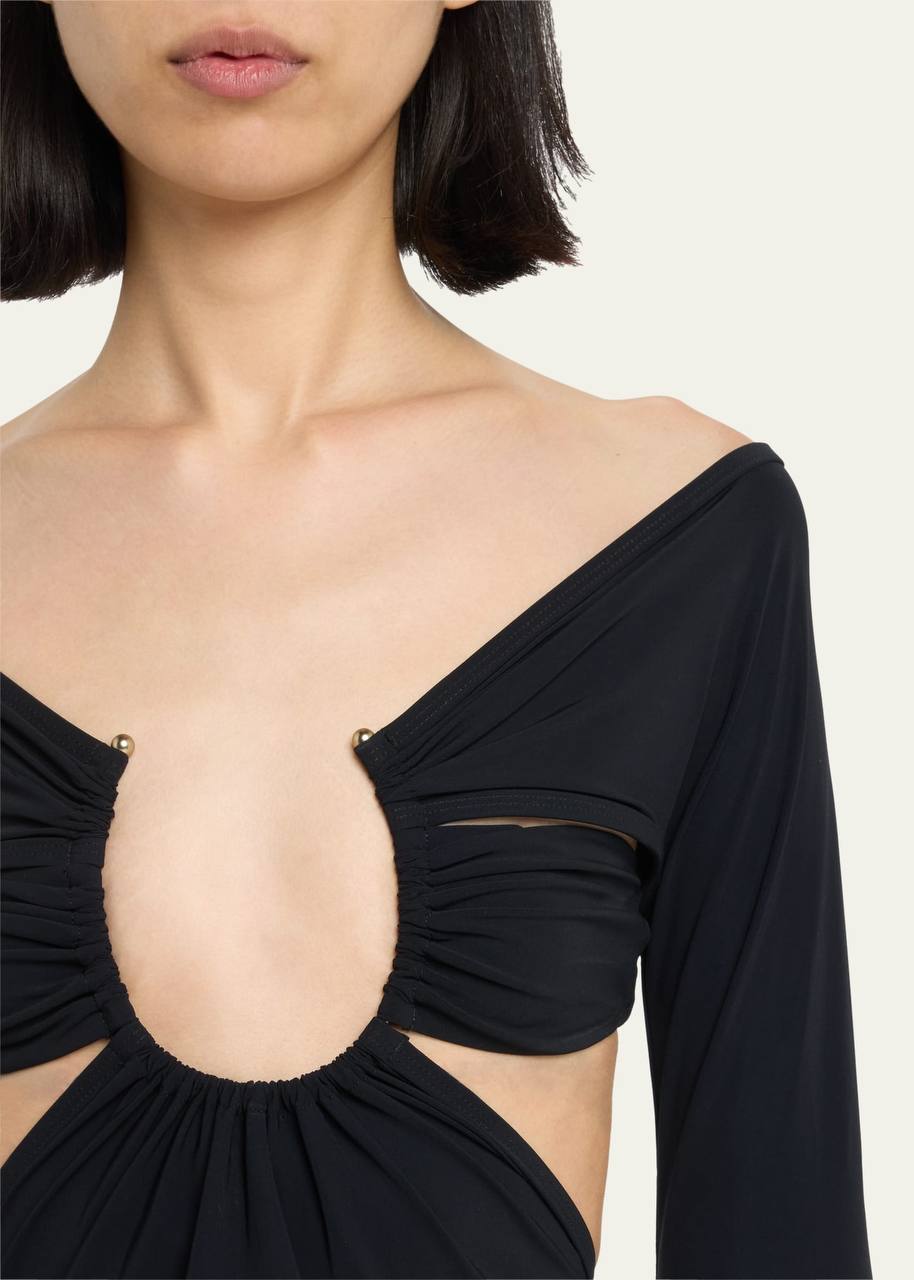 CE Odessa Ruched Prong Long Sleeve Cutout Jersey Maxi Dress