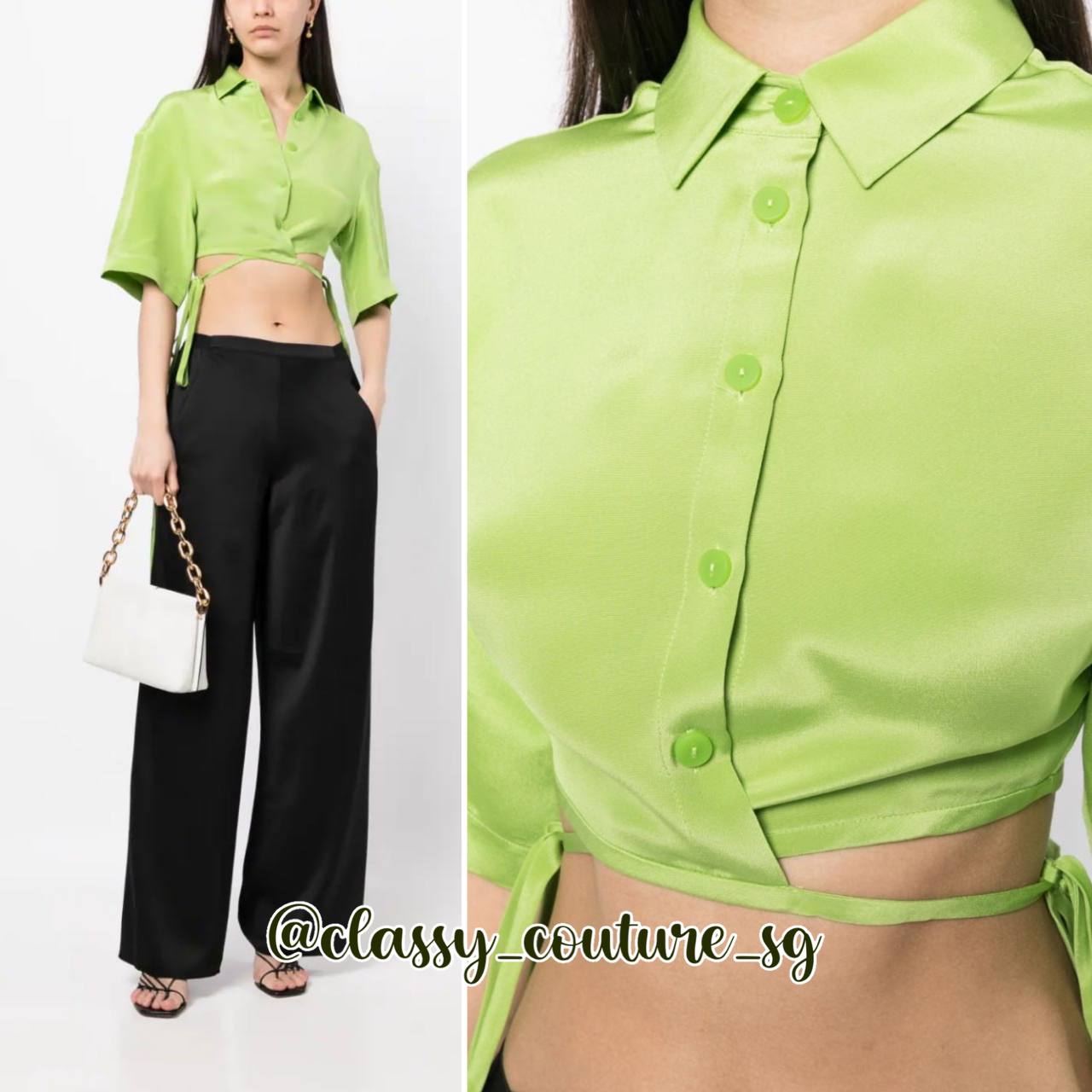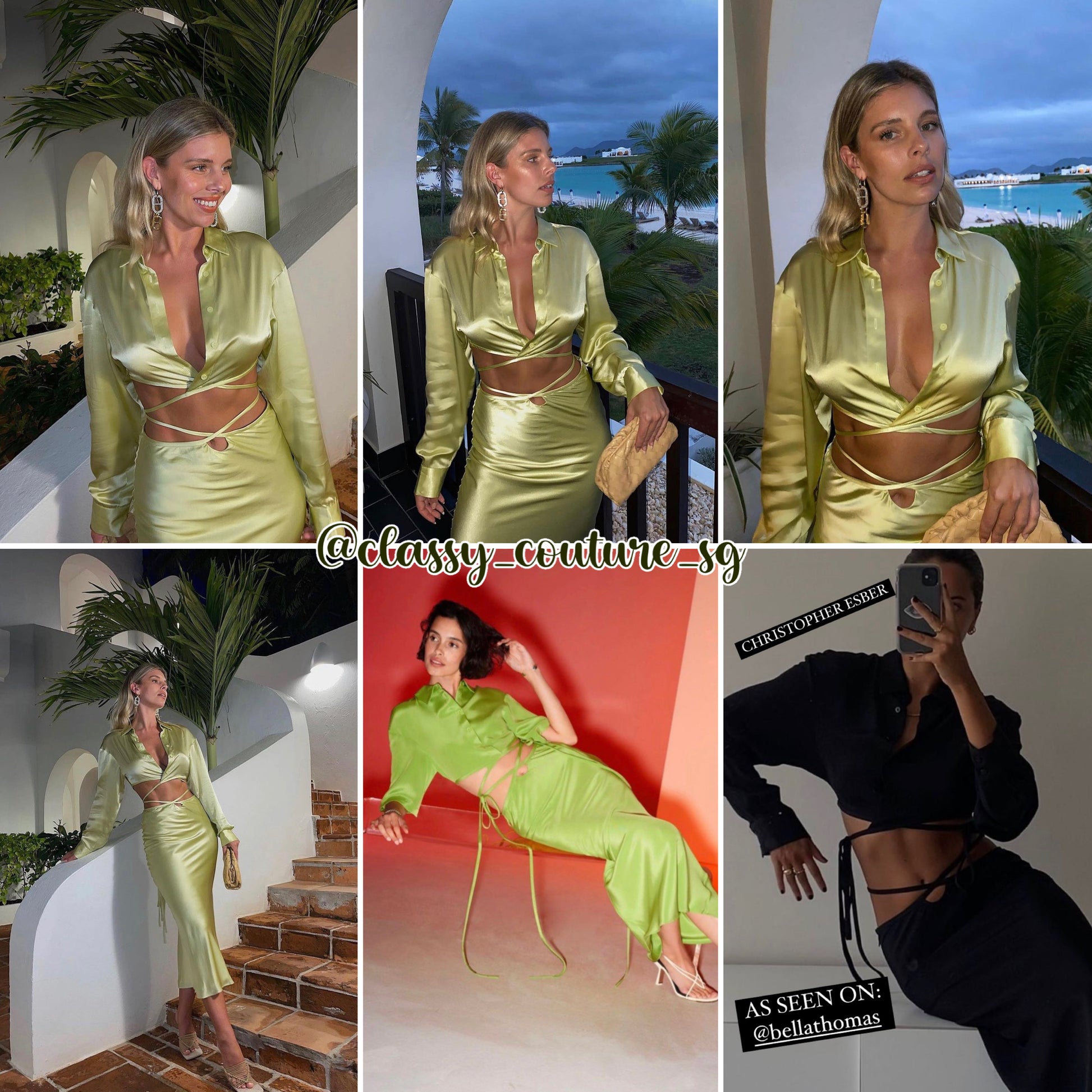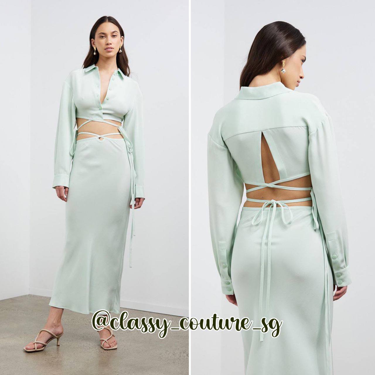 CE Silk Loophole Tie Skirt midi | Short & Long Sleeve Crop Tie Shirt | Set
