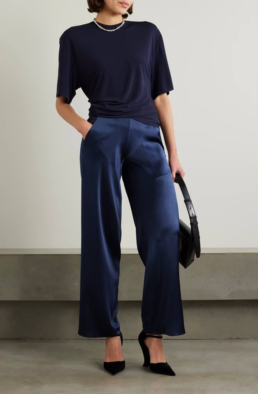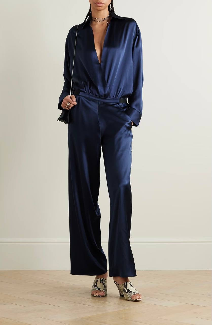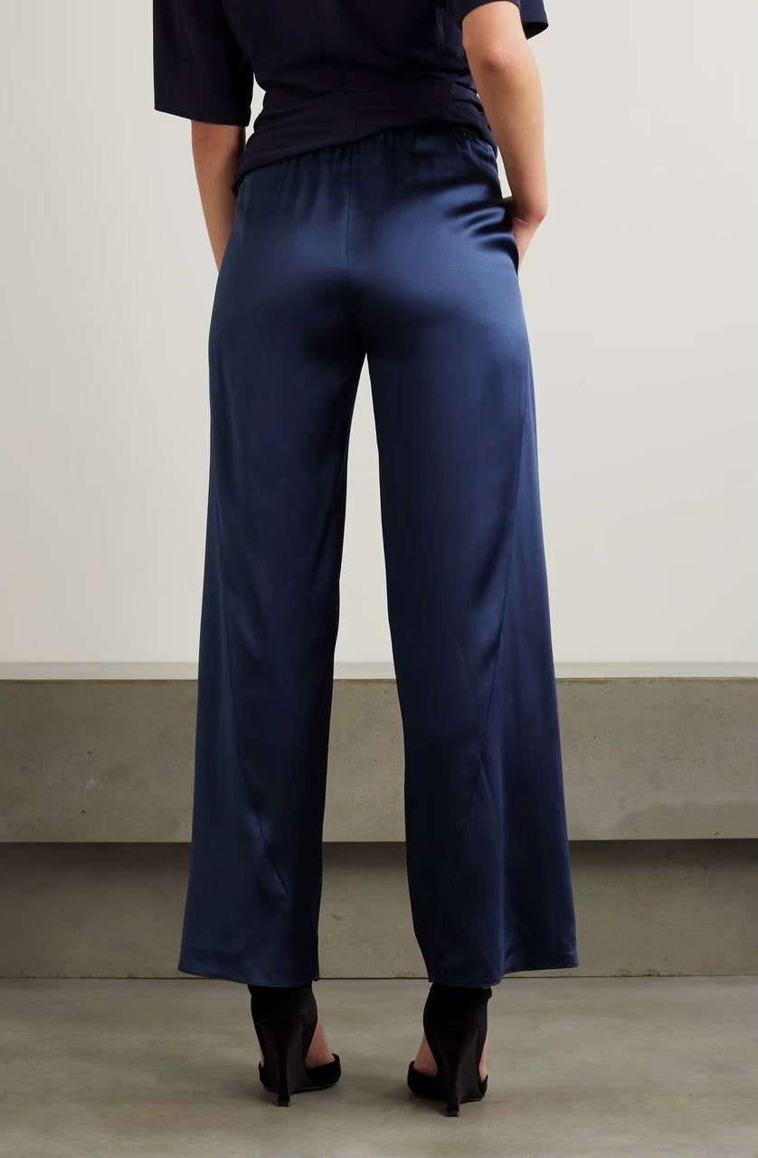 CE Silk Satin Bodysuit Top | Wide-leg Pants in Blue | Set