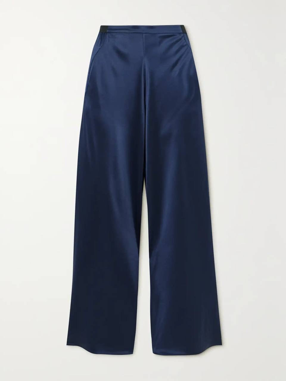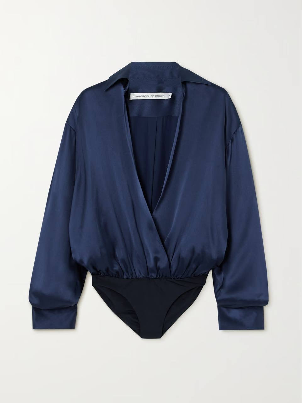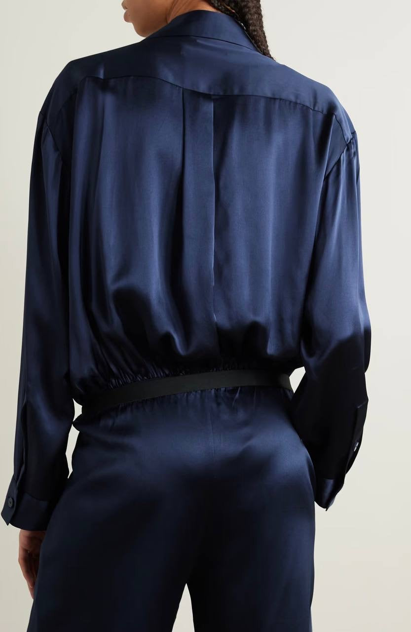 CE Silk Satin Bodysuit Top | Wide-leg Pants in Blue | Set