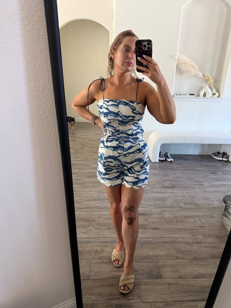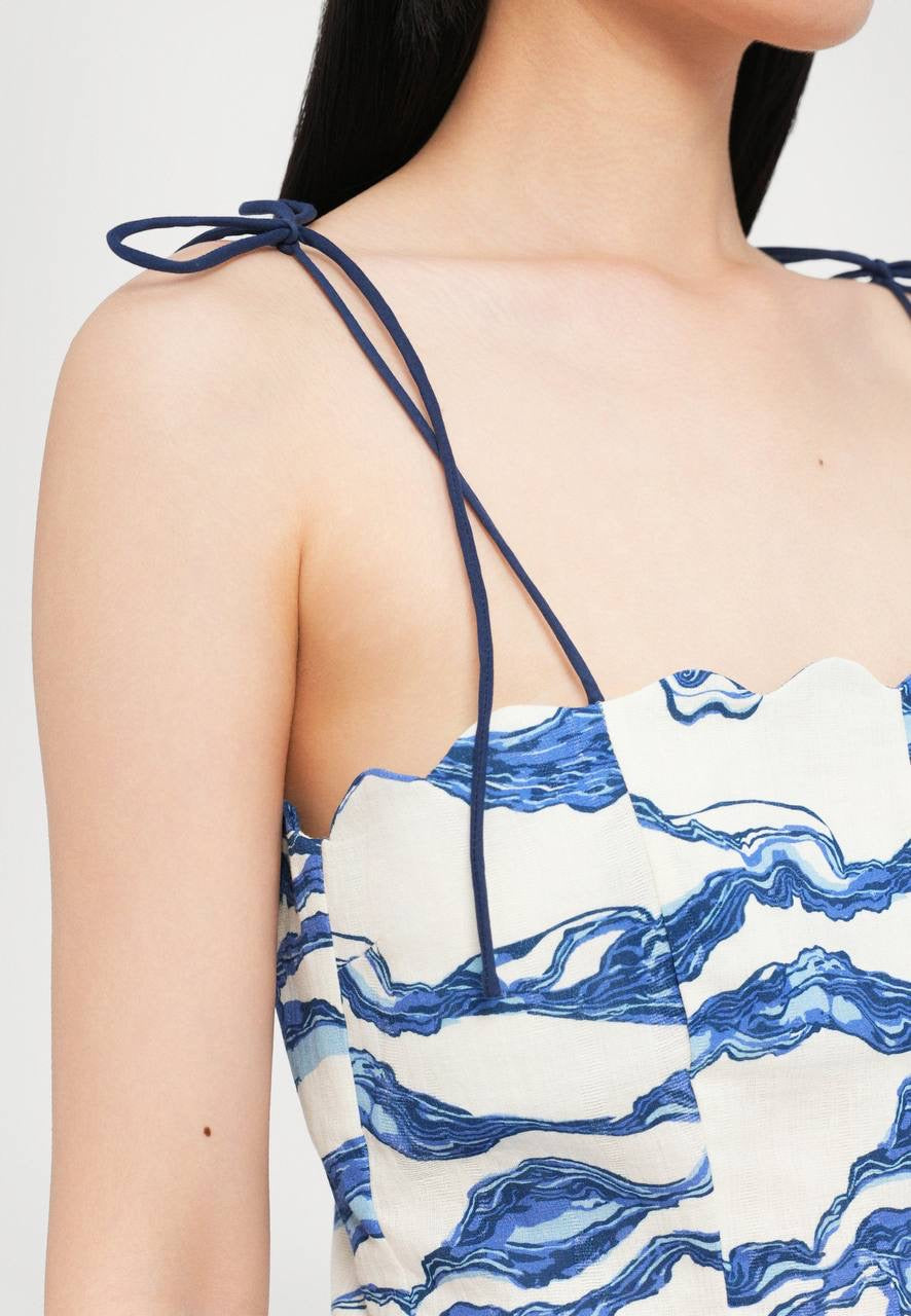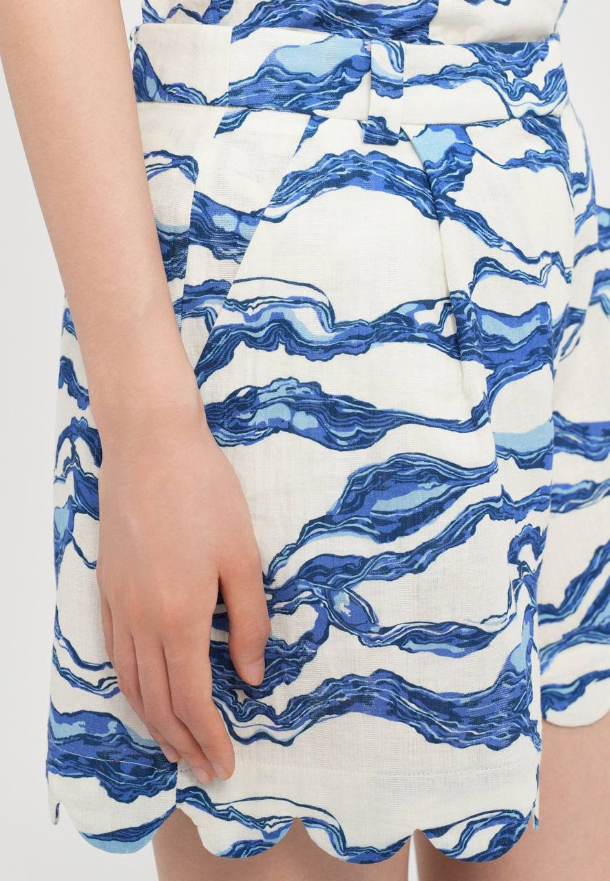 HFM Yara Tie Tank Cami Top | Petra Shorts | Sea/light blue Scallop Hem Cotton-Linen Set