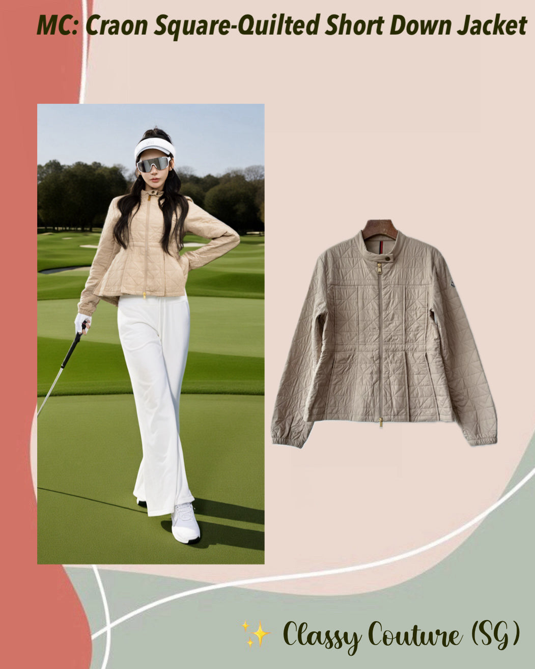 MC Craon Square-Quilted Short Padded Jacket in Peach Pink
