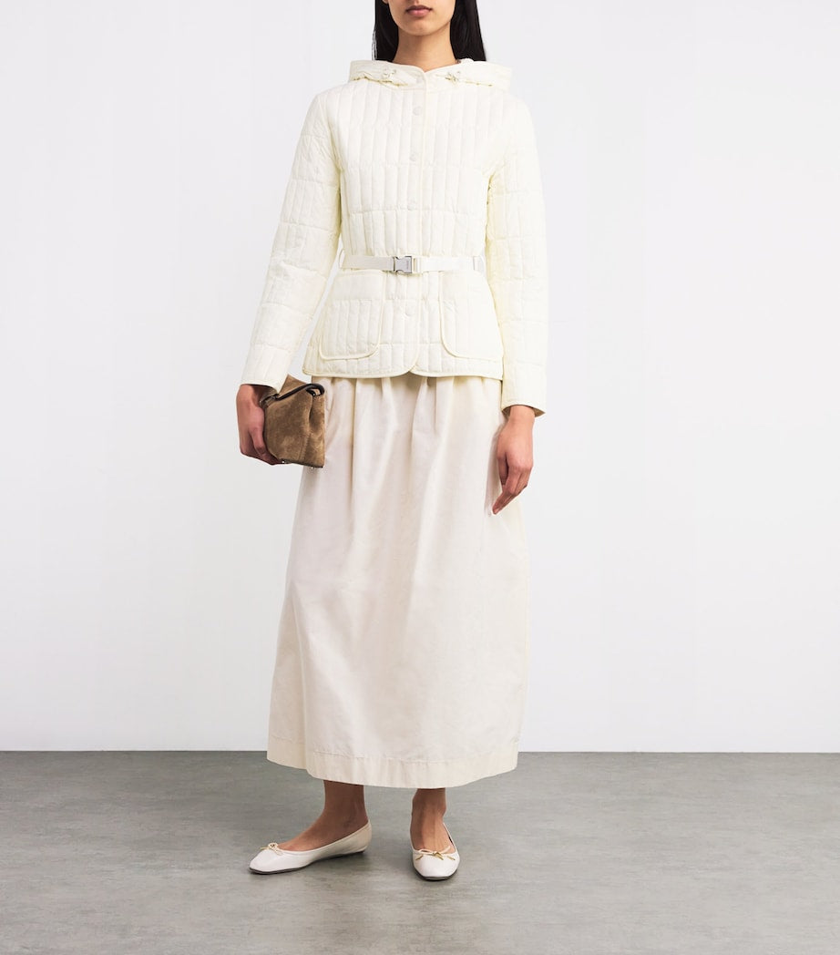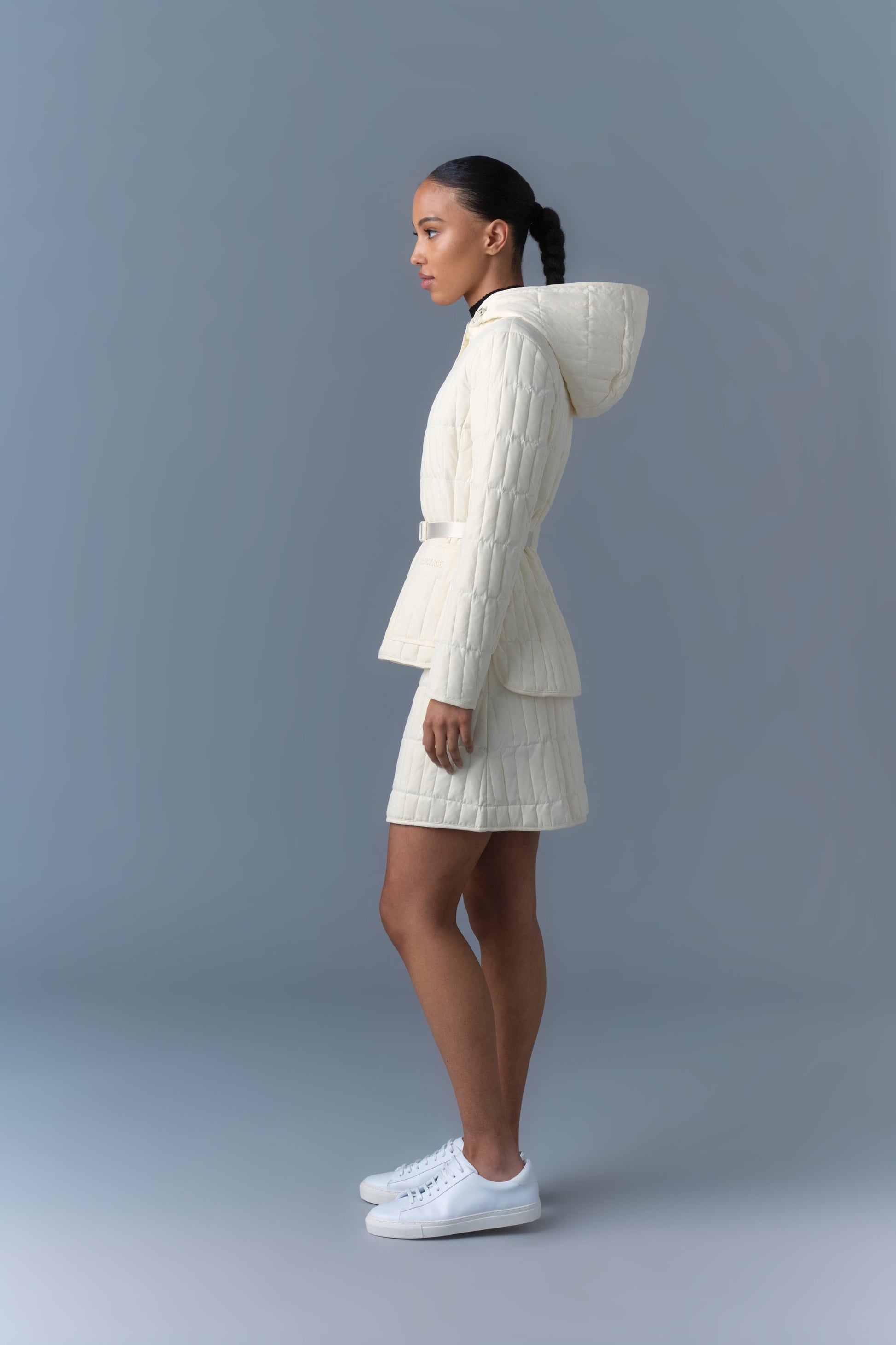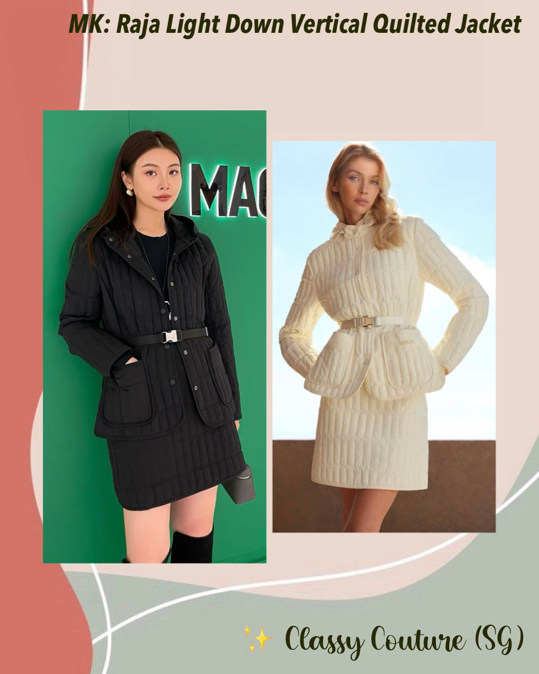 MK Raja Light Down Vertical Quilted Hooded Jacket with Belt