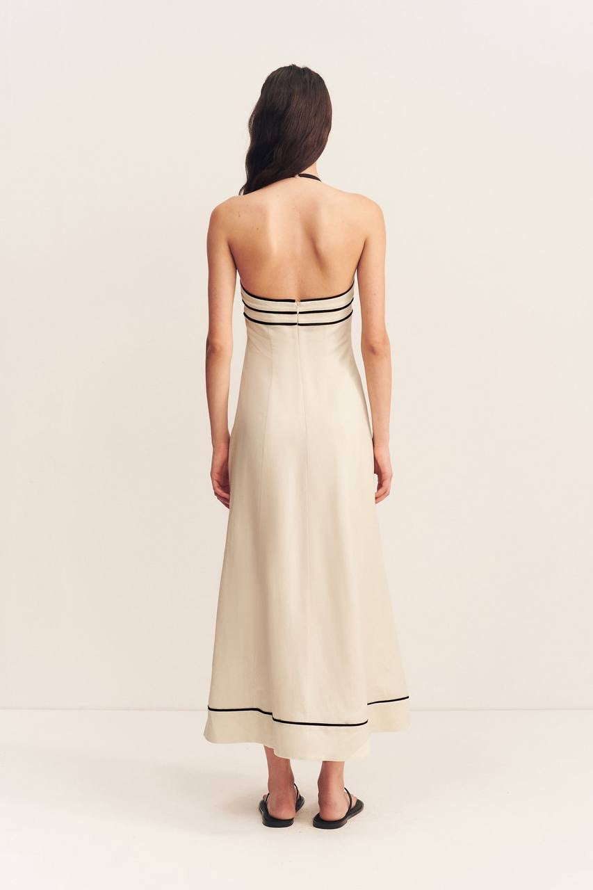 SALE! SJ Billie Contrast Panelled Halter Linen-Viscose Midi Dress