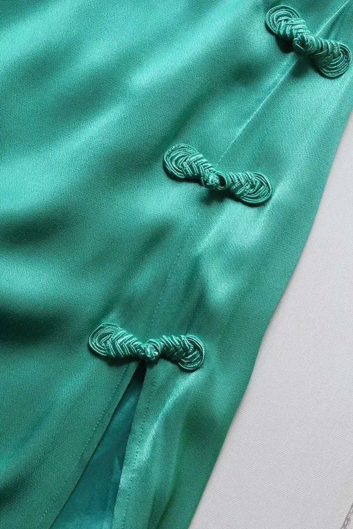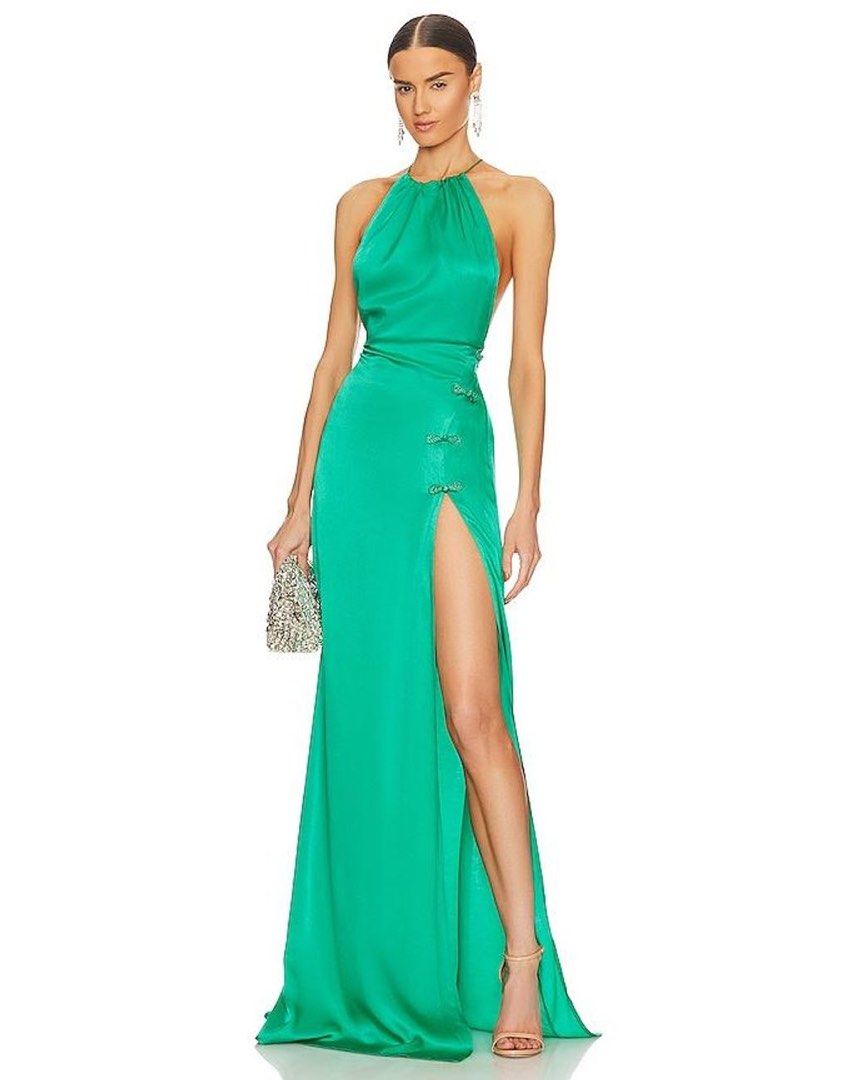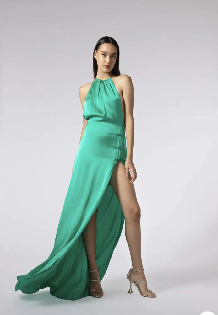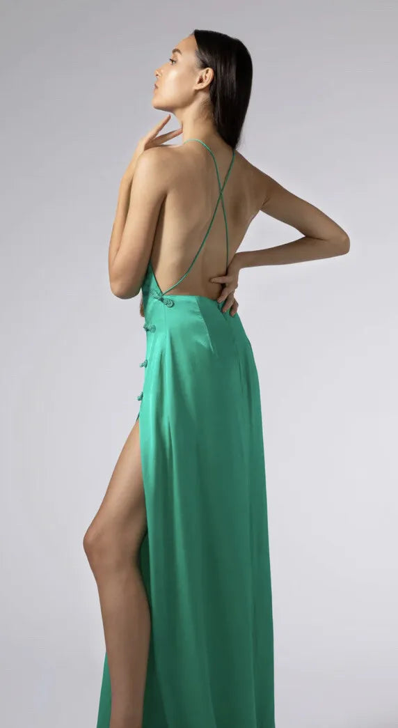 Sau Porter Backless Maxi Dress in Jade Green | draped satin gown