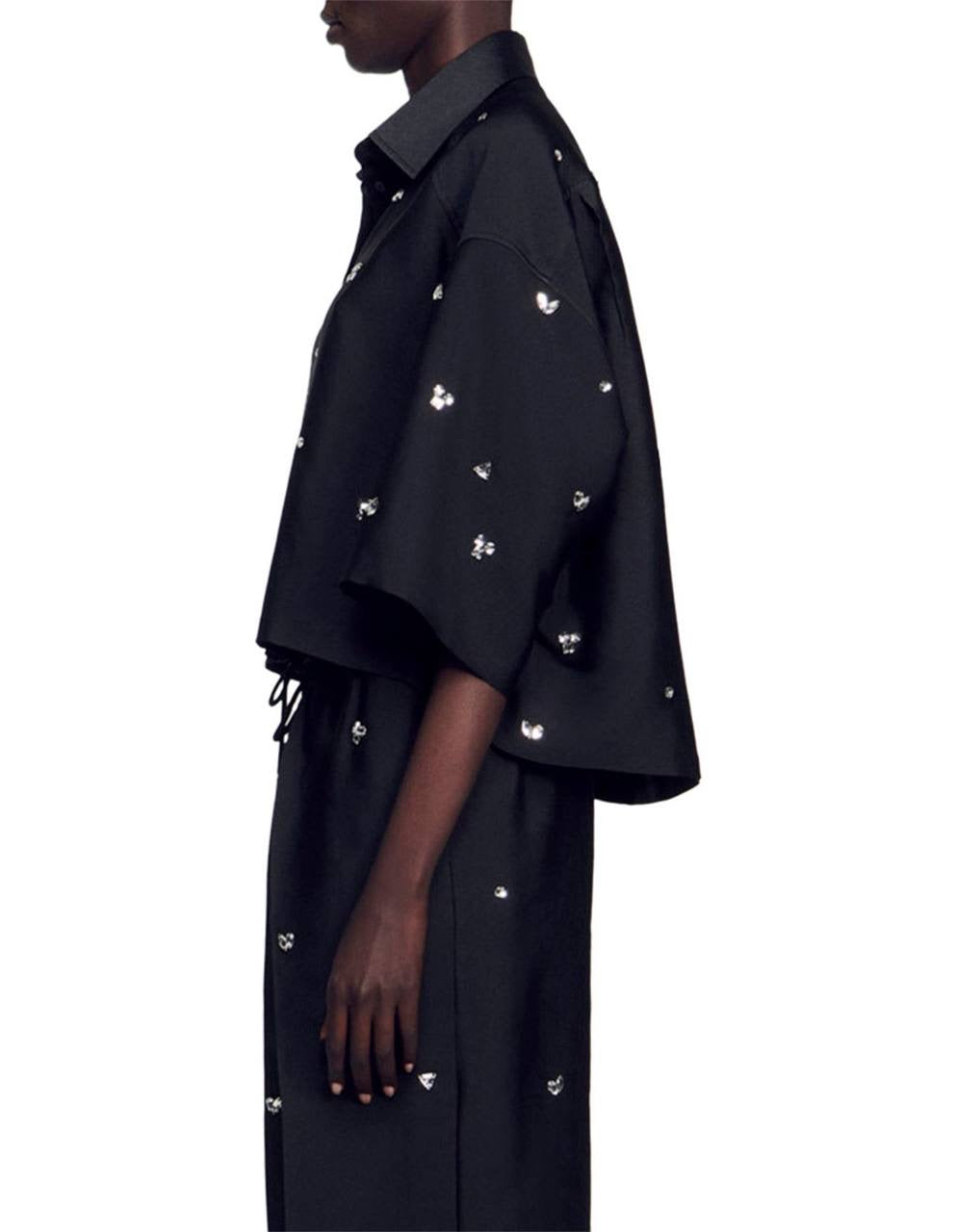 SD Mentissa Silk-blend Rhinestone Embellished Cropped Shirt