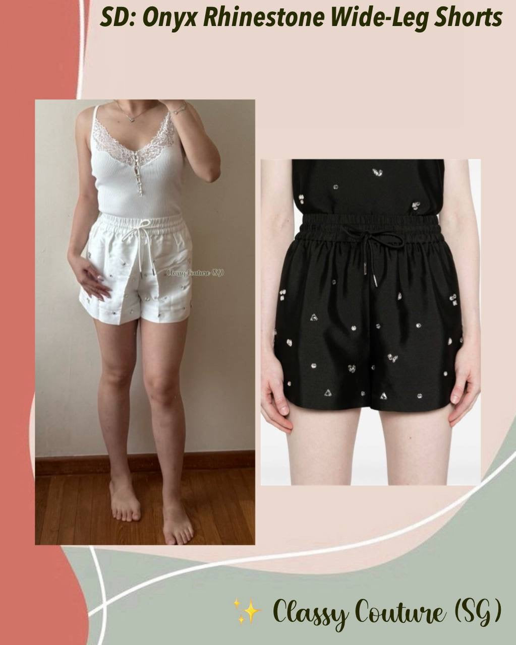 SD Onyx Rhinestone Wide-Leg Drawstring Shorts