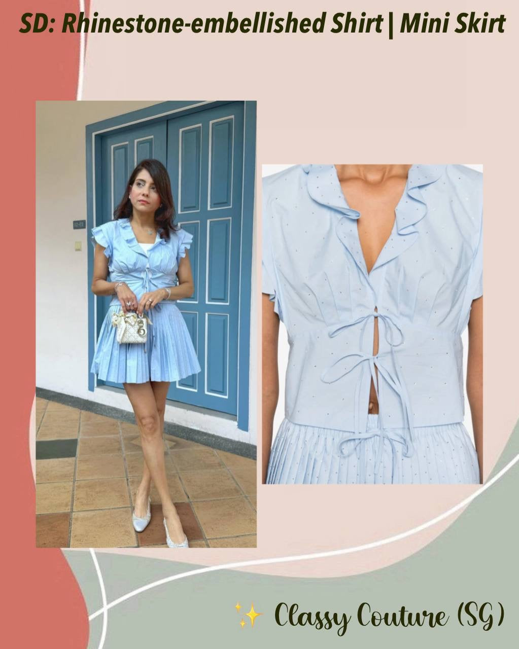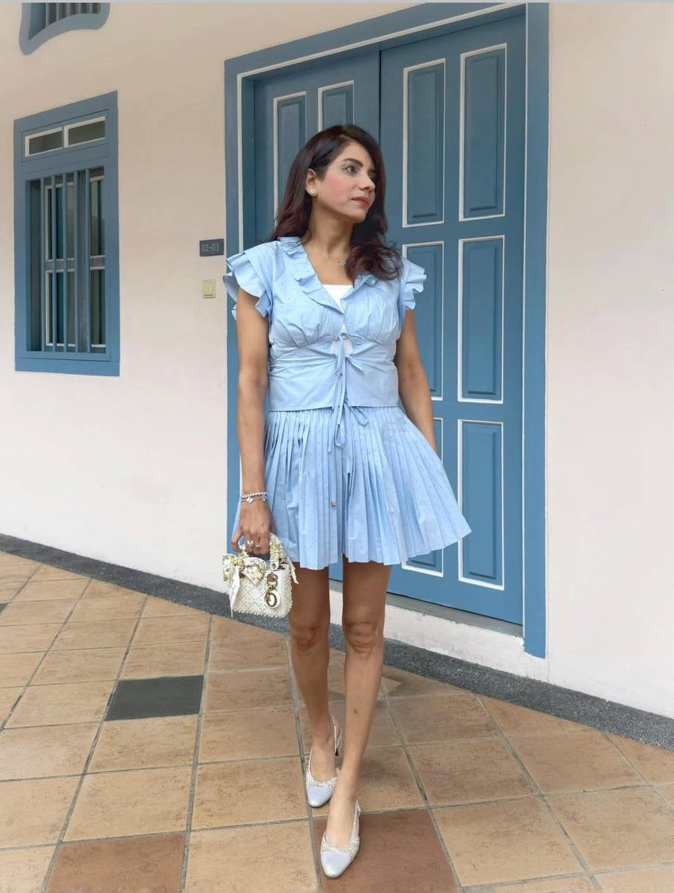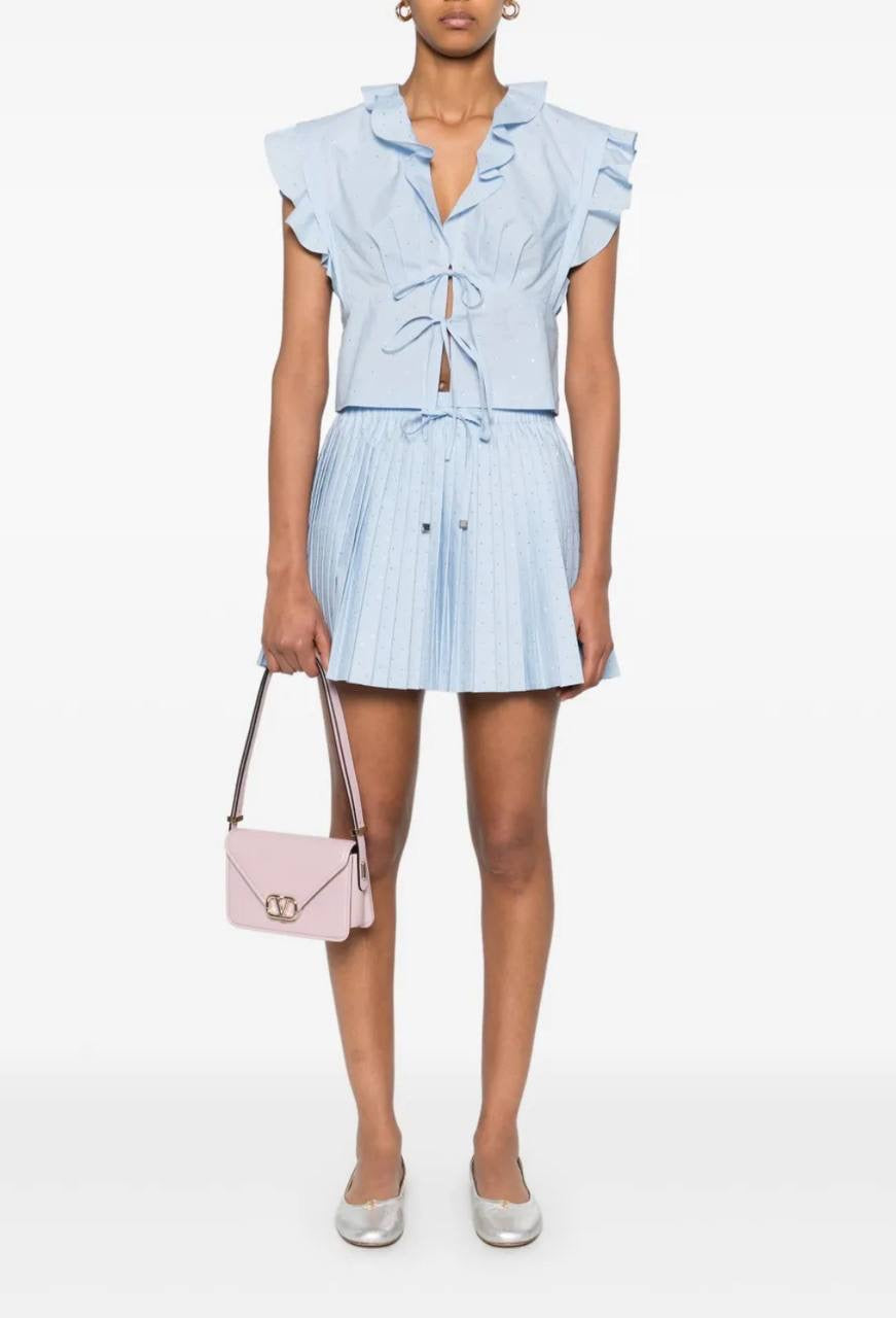 SD Azur Rhinestone Embellished Ruffle Crop Top | Stellie Pleated Mini Skirt | Cotton-blend Set