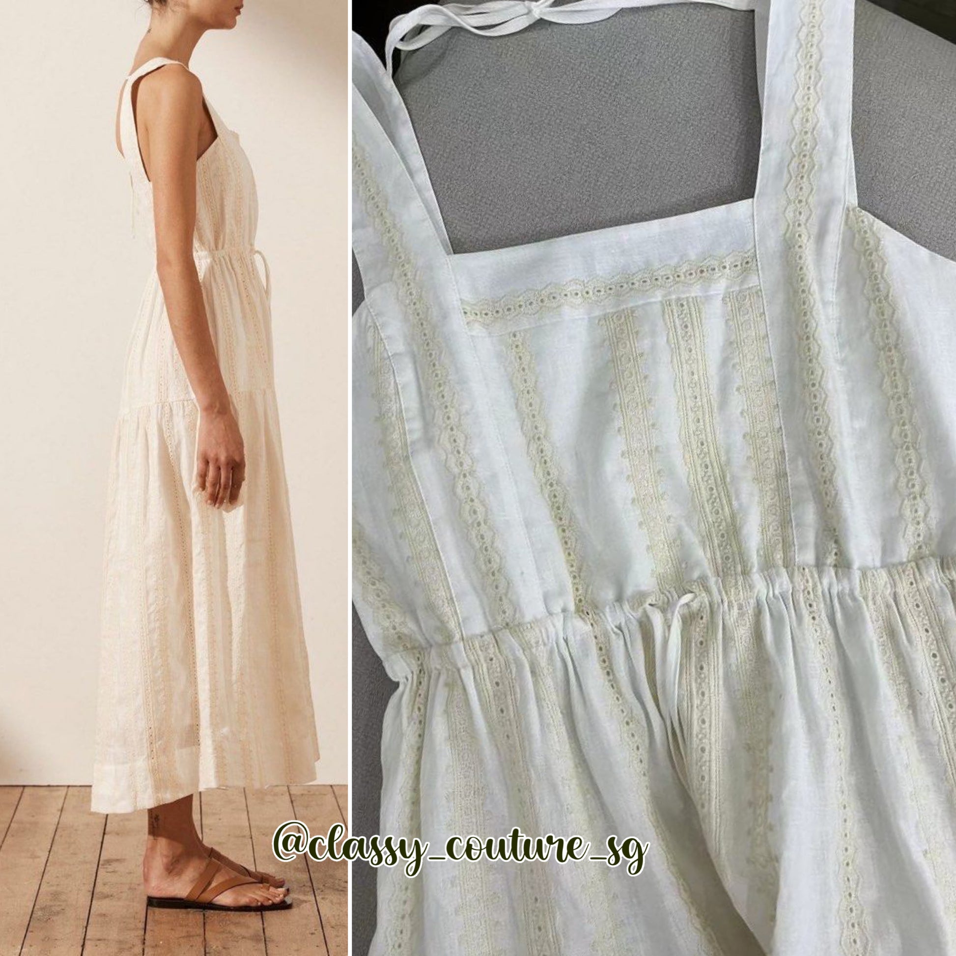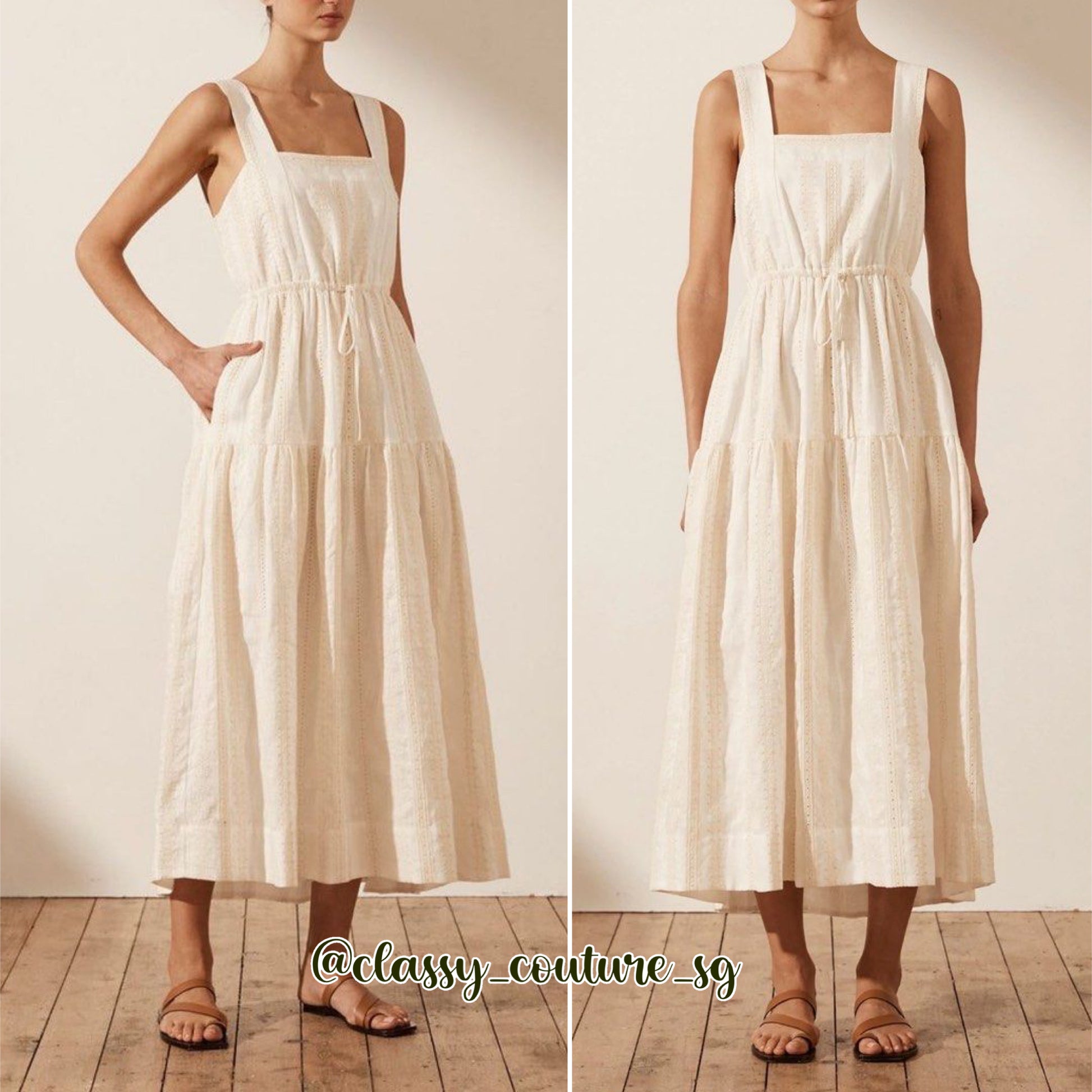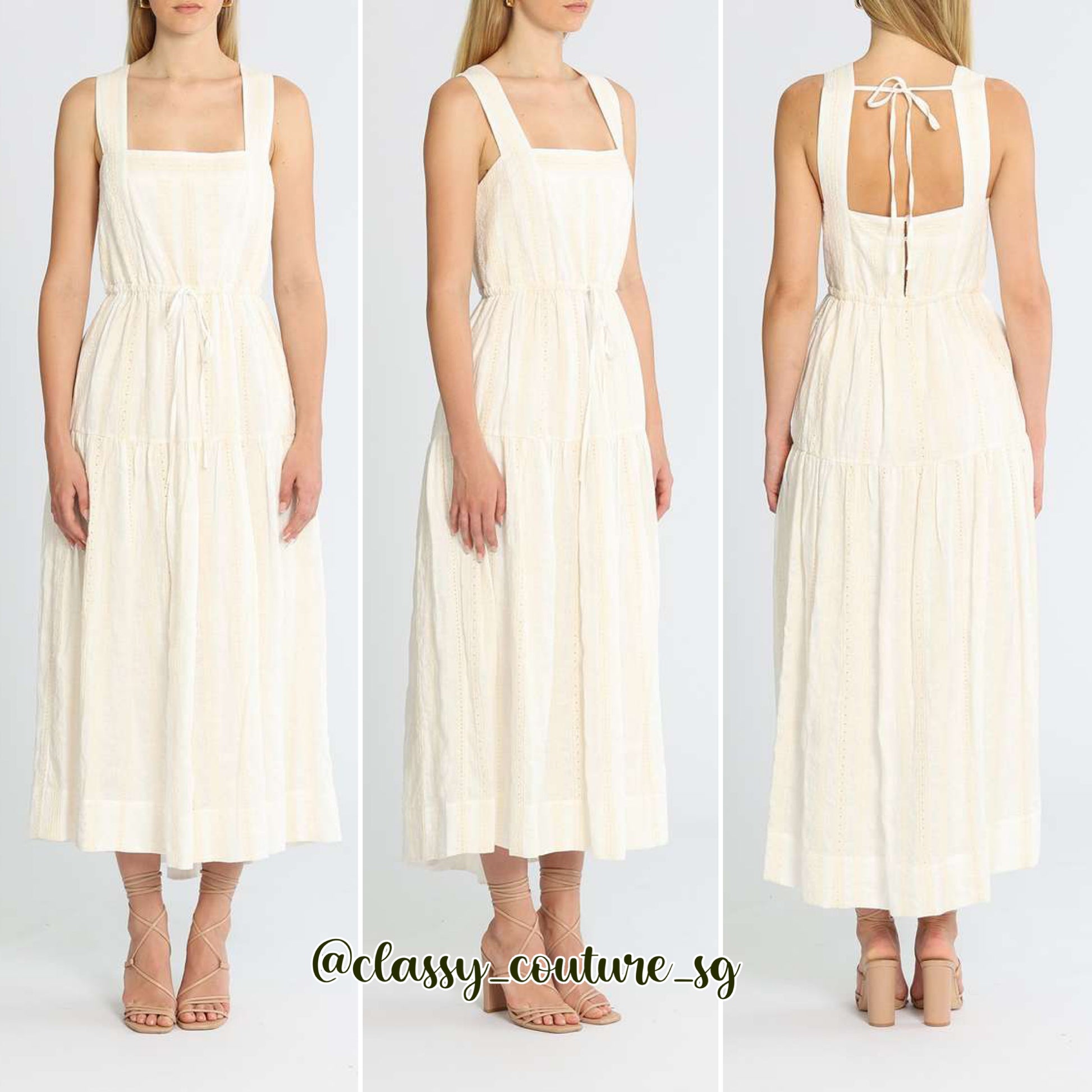 SJ Luana Linen Square Neck Midi Dress in Cream White