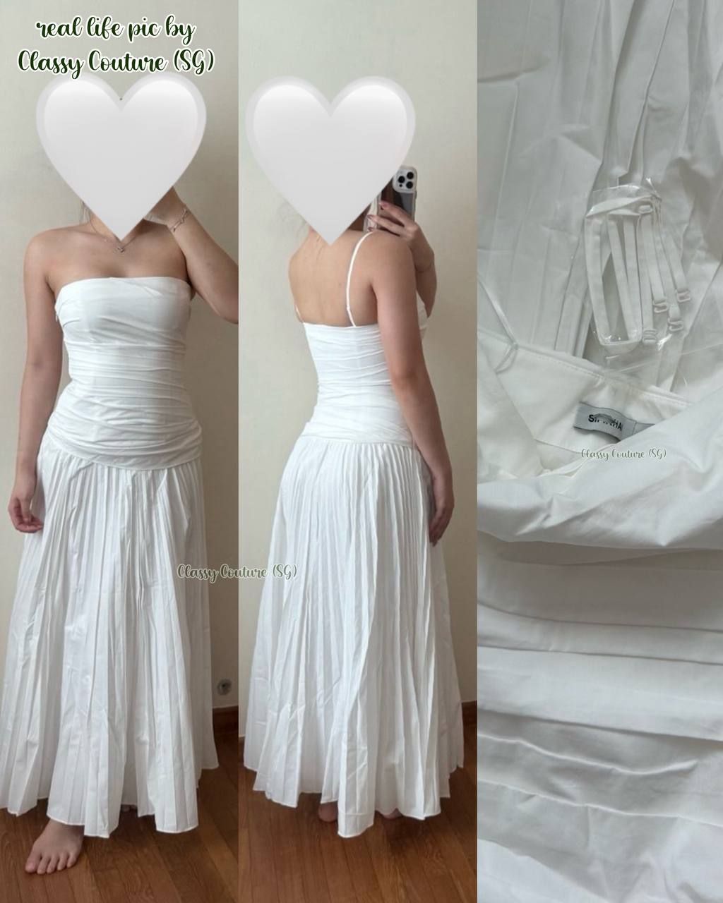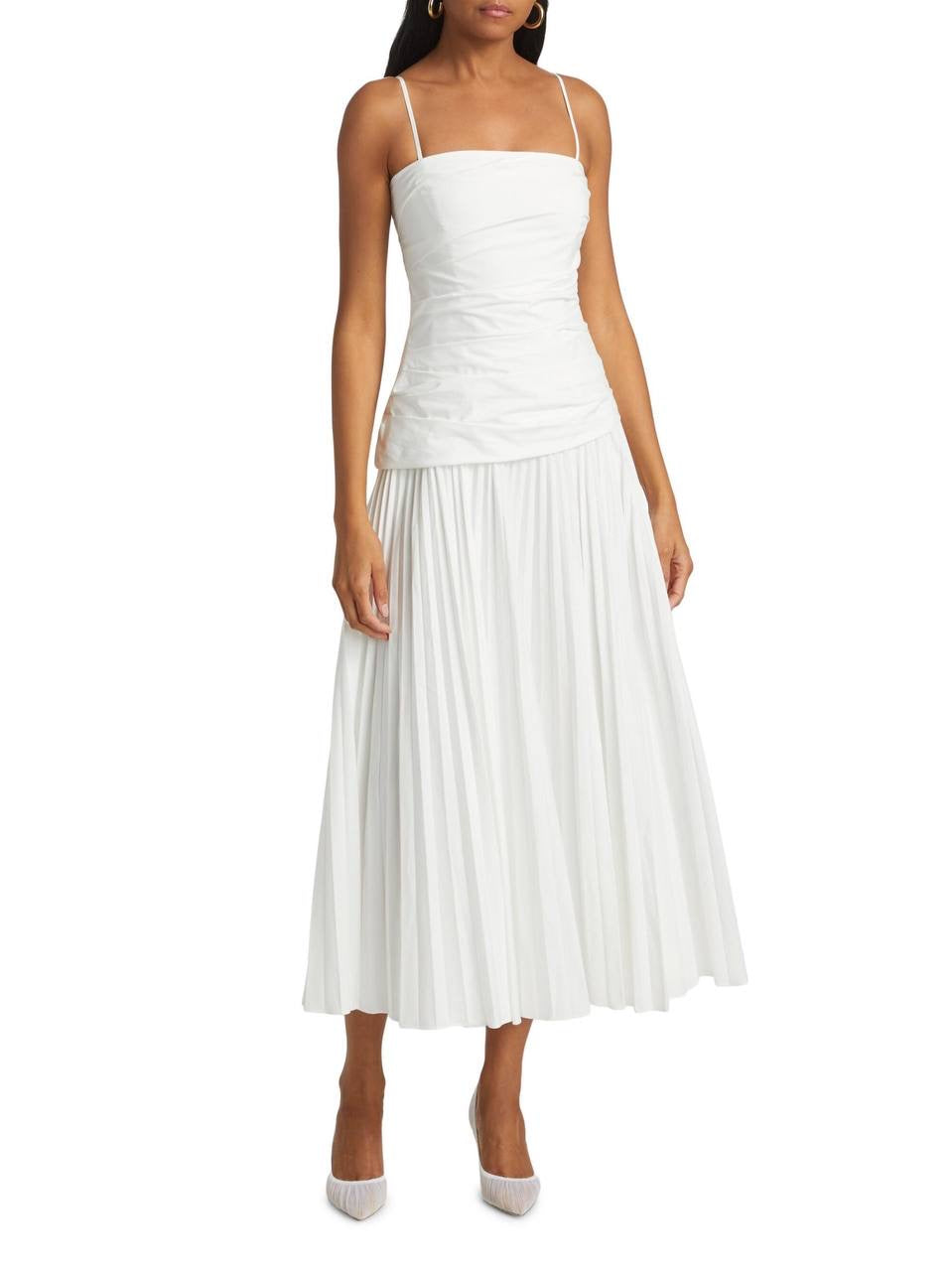 SK Arie Bandeau Pleated Cotton Midi Dress