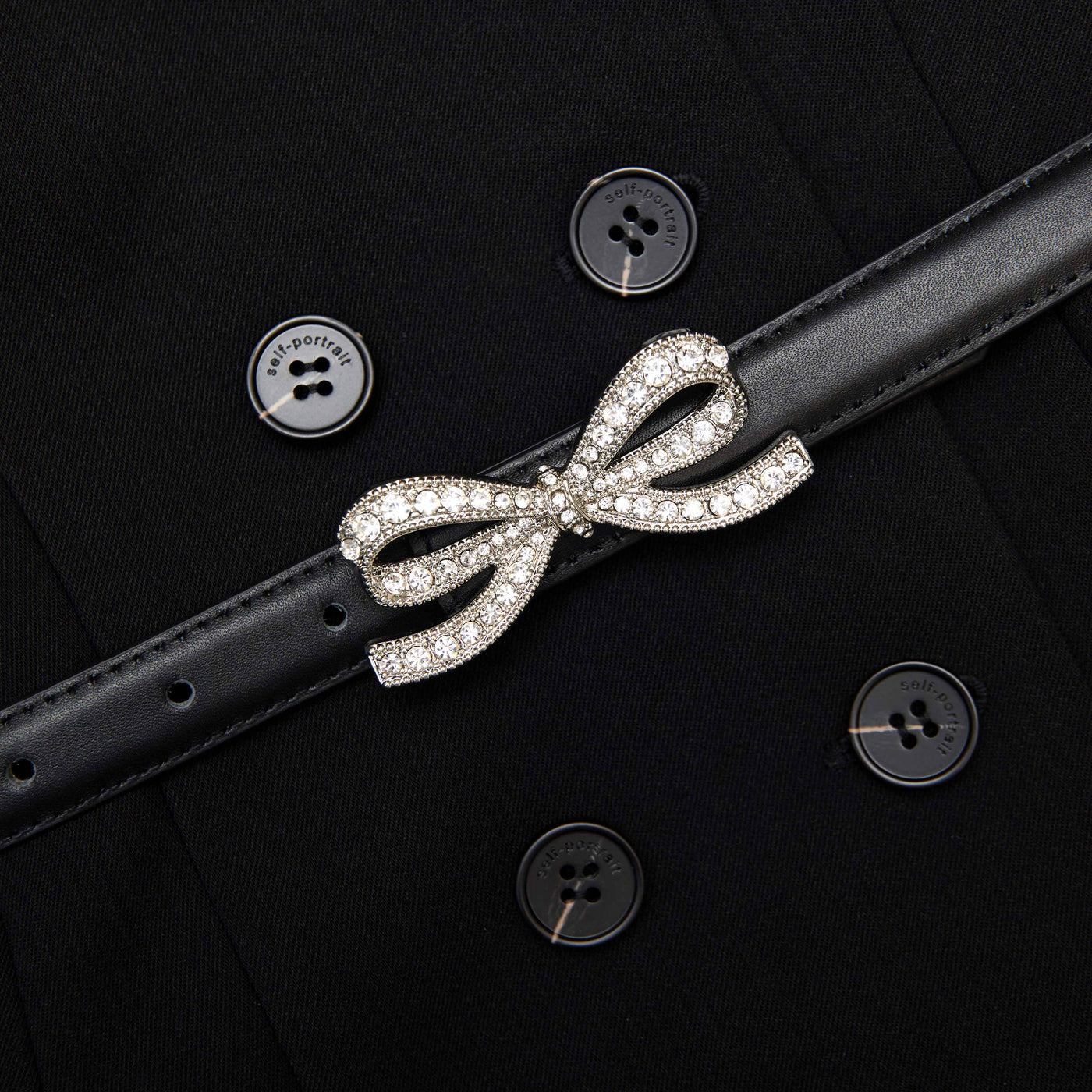 SP Black Crepe Short Sleeve Mini Dress with Diamante Bow Belt