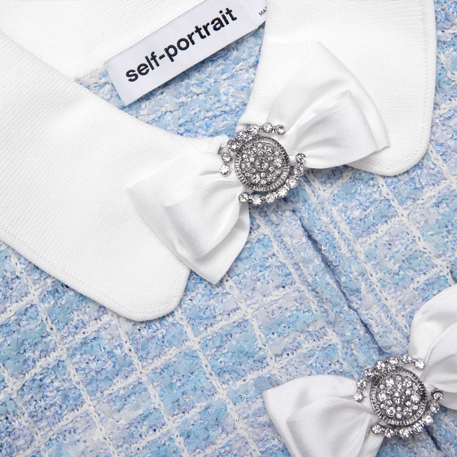 SP Blue Check Knit Long Sleeve Mini Dress - Collared and No Collar