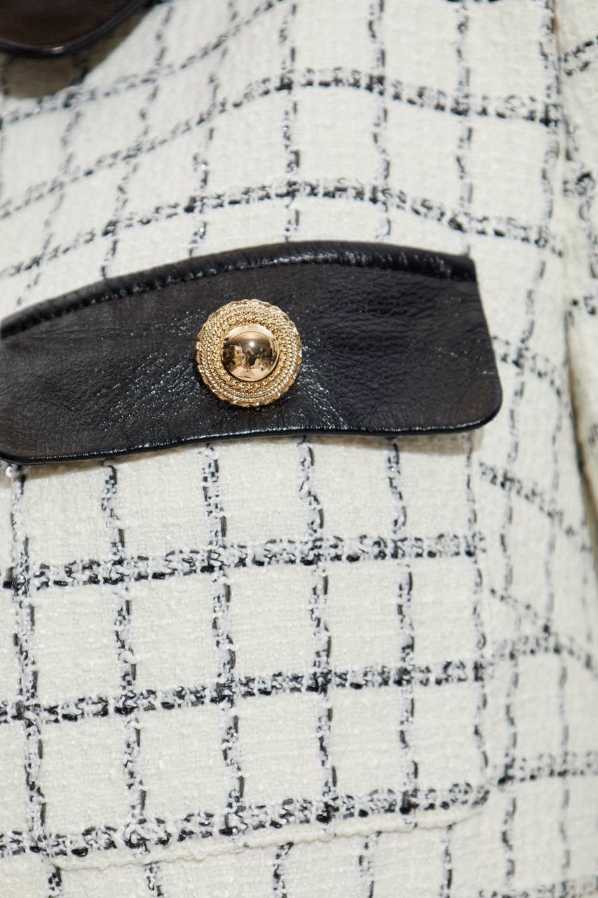 SP Check Boucle Leather Trim Long Sleeve Mini Dress
