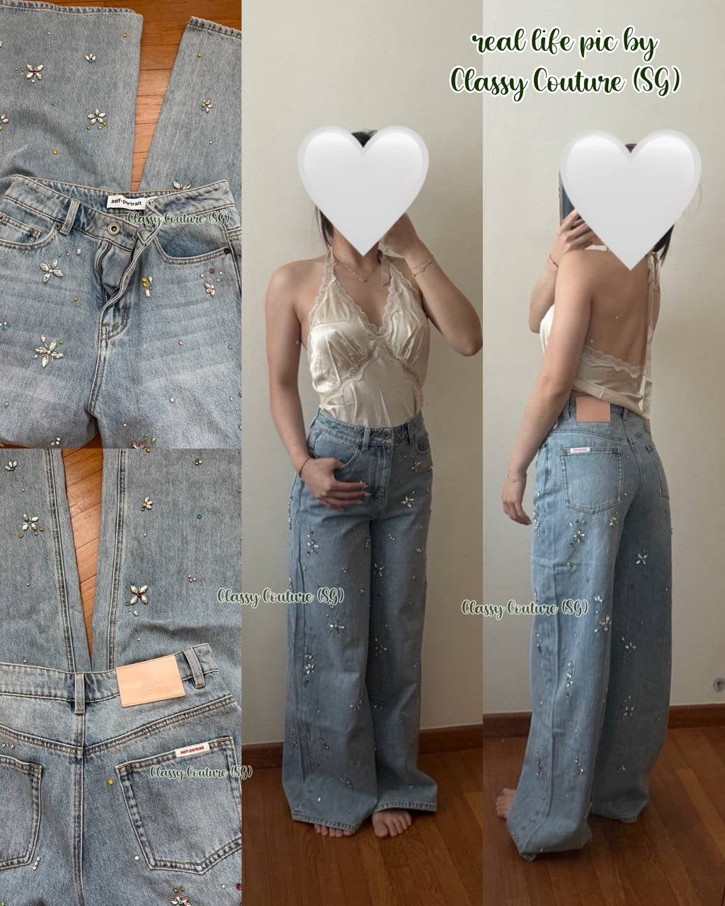 SP Embellished High Waist Wide Leg Jeans in Light Blue Wash | Dark Blue Wash