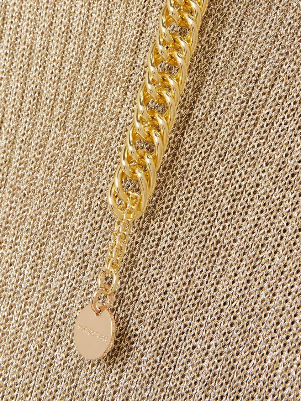 SP Gold Lurex Ribbed Knit Long Sleeved Top | Ruffle Hem Mini Dress