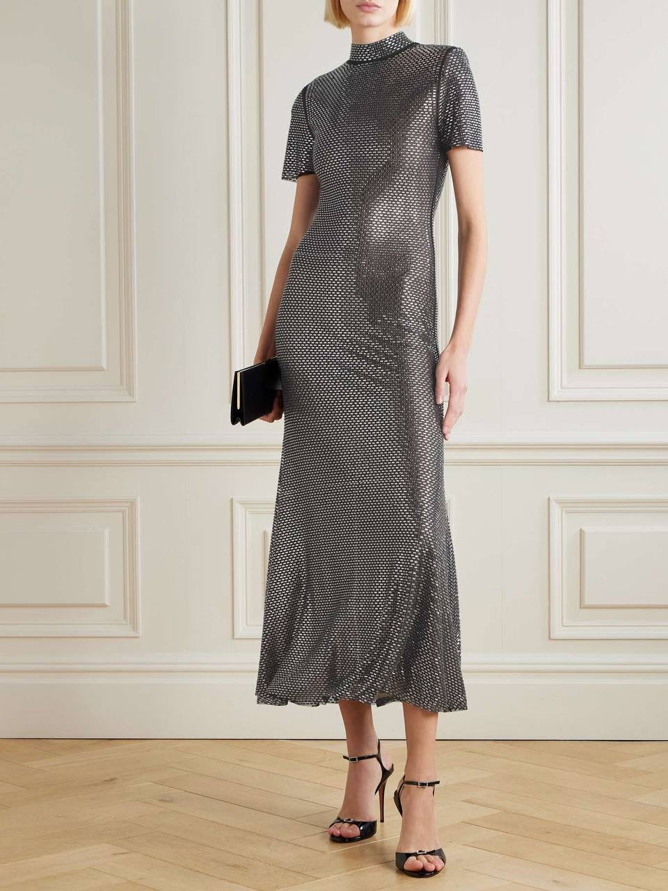 SP Gun Metal Mesh Rhinestone Maxi Dress