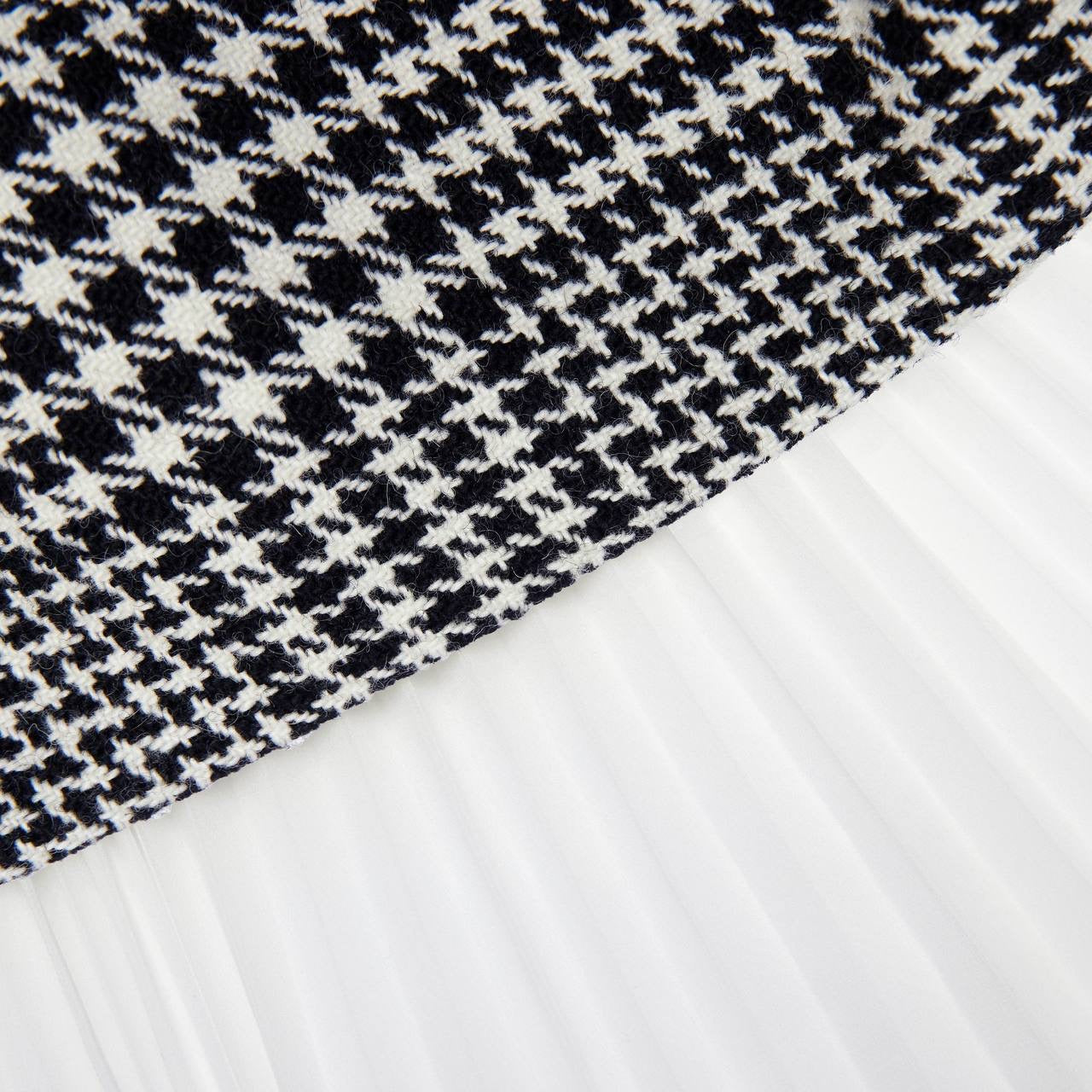 SP Grey Houndstooth Pleated Belted Short Sleeve Mini Dress | Tailored Midi Dress