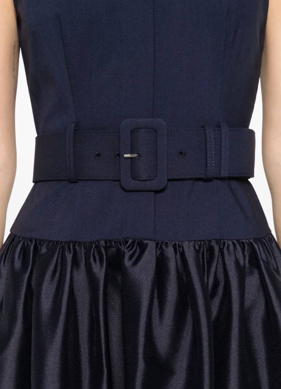 SP Navy Blue Belted Drop Waist Viscose-wool Twill Midi Dress