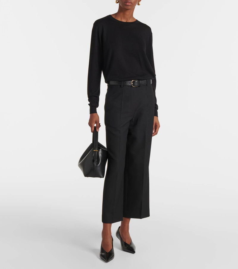 Tot Crew-neck Wool-Silk Fine Knit Sweater Pullover
