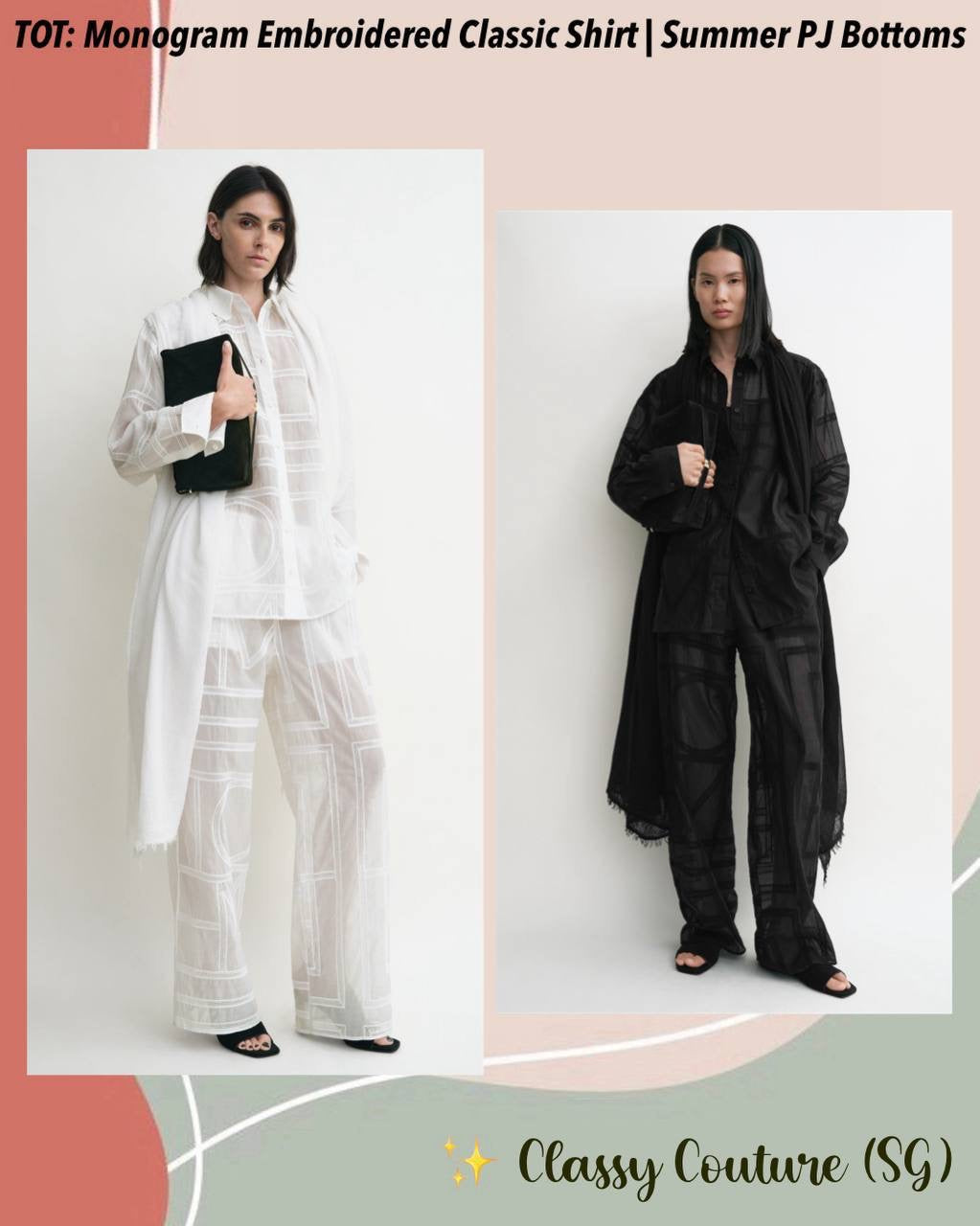 TOT Monogram Embroidered Classic Shirt | Summer PJ Bottoms Pant | Silk-Cotton Set
