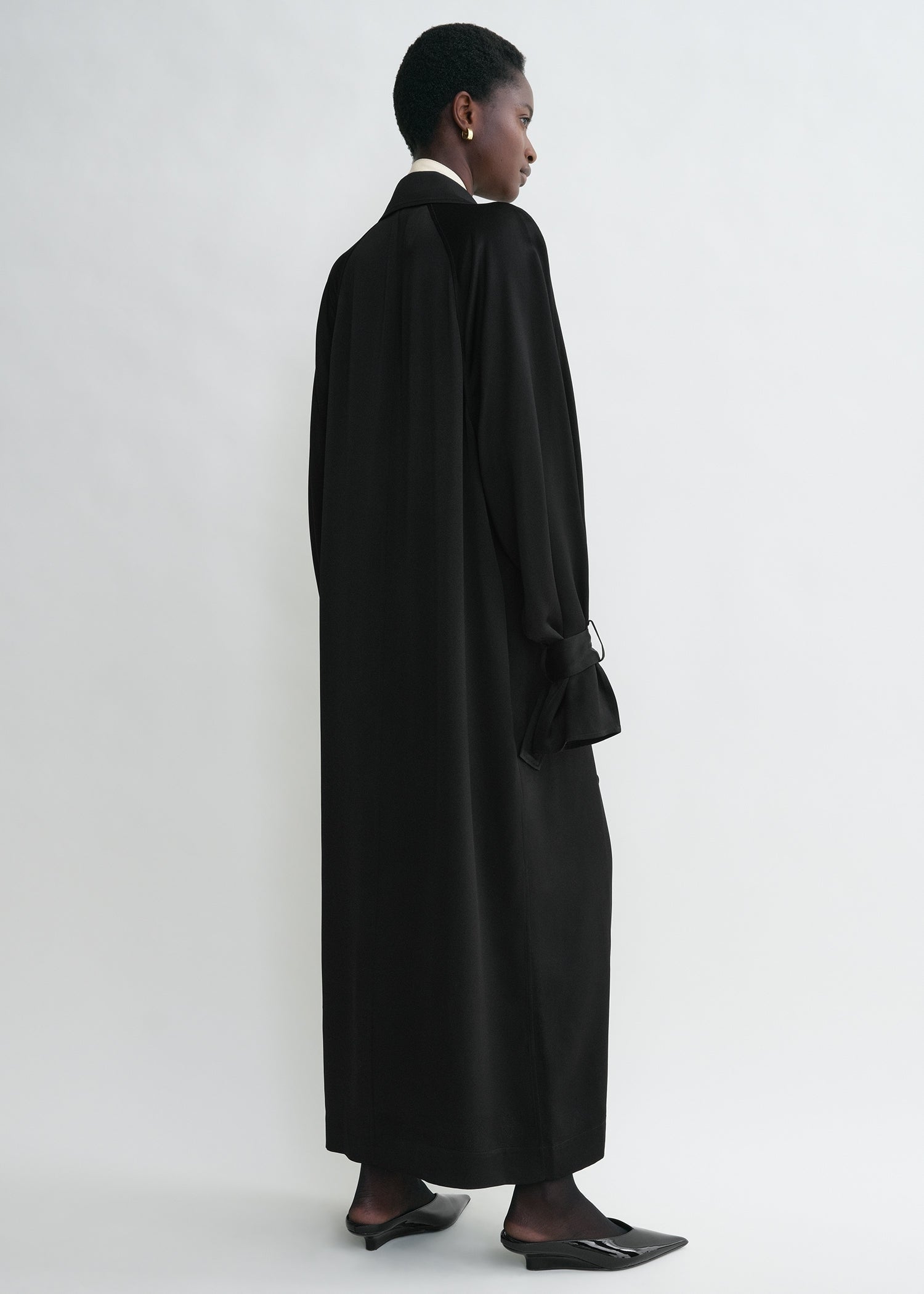 TOT Satin Long Trench Coat Midi Dress
