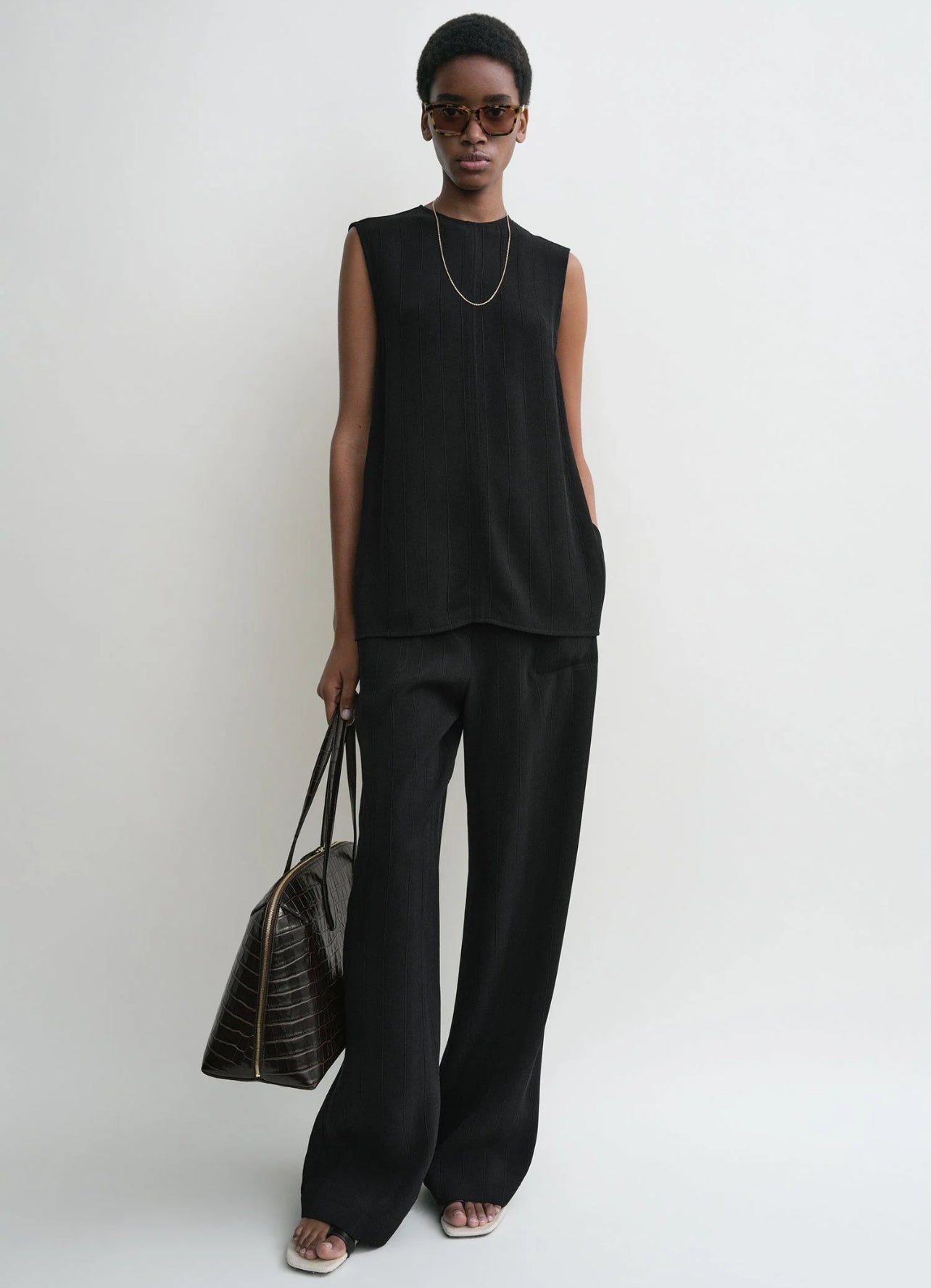 Tot Woven Stripe Top | Pants | Viscose-Linen Set